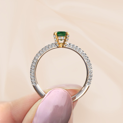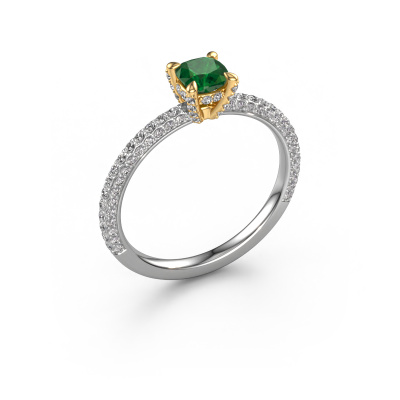 La bague de fiançailles mentionnée ci-dessus a été nommée Saskia 2 cus. Ce type de bague de fiançailles est appelé une bague de fiançailles solitaire pavé car elle ne comporte qu’une seule pierre centrale et les tiges de la bague de fiançailles sont également pleins. La bague de fiançailles est faite dans une combinaison d'or 14 Carat et d’or jaune et a un emeraude coussin d’une de 4.5 mm, et des diamants synthétiques sont sertis sur les épaules de l’anneau. Chaque bijou est faite spécialement pour vous, avec une attention particulière portée aux détails et au design. Cette bague de fiançailles solitaire pavé forgée en or blanc contemporains a un beau émeraudes coussin comme pierre centrale, avec plus de émeraudes sertis dans la bague pour accentuer encore plus la présence de la pierre centrale. Le sertissage à griffes autour du emeraude étant ouvert, le emeraude capte la lumière de tous les côtés et brille de manière optimale. Ci-dessus, vous pouvez voir comment notre orfèvre travaille la bague de fiançailles avec une extrême précision dans les moindres détails, de telle sorte que le emeraude élevé puisse attirer tous les regards. Quelle belle bague de fiançailles à offrir lors de votre demande en mariage à l'amour de votre vie, à votre centre rayonnant ! Vous avez peut-être remarqué que nos prix sont en moyenne inférieurs de 30% à ceux d'un autre bijoutier. Et ce alors que la qualité de nos bijoux est même plus élevée dans la plupart des cas ! En effet, nos orfèvres fabriquent votre bague de fiançailles directement dans notre propre atelier. Cela signifie que nous n'avons pas à inclure des frais de stocks coûteux et que nous pouvons travailler n'importe quel détail directement sur votre bague de fiançailles.Notre équipe de designers talentueux et passionnés ajoute chaque jour de nouveaux modèles bague de fiançailles à notre collection en ligne. Notre objectif est de pouvoir vous offrir une grande variété de bijoux. N'hésitez pas à demander un devis si vous avez des souhaits spécifiques pour votre bague de fiançailles. Nous garantissons de vous faire une offre que vous ne pourrez pas refuser.Pour vous faciliter la tâche, vous pouvez facilement nous retourner tout bijou commandé dans les 30 jours suivant la livraison.