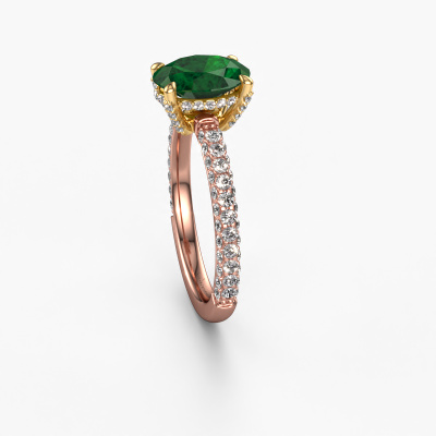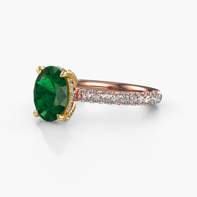 La bague de fiançailles mentionnée ci-dessus a été nommée Saskia 2 ovl. Ce type de bague de fiançailles est appelé une bague de fiançailles solitaire pavé car elle ne comporte qu’une seule pierre centrale et les tiges de la bague de fiançailles sont également pleins. La bague de fiançailles est faite dans une combinaison d'or 14 Carat et d’or jaune et a un emeraude ovale d’une de 9x7 mm, et des diamants synthétiques sont sertis sur les épaules de l’anneau. Chaque bijou est fabriquée spécialement pour vous par nos maîtres orfèvres dans notre propre atelier. Cette bague de fiançailles solitaire pavé forgée en or rose exclusives a un beau émeraudes ovale comme pierre centrale, avec plus de émeraudes sertis dans la bague pour accentuer encore plus la présence de la pierre centrale. Le sertissage à griffes autour du emeraude étant ouvert, le emeraude capte la lumière de tous les côtés et brille de manière optimale. Ci-dessus, vous pouvez voir comment notre orfèvre travaille la bague de fiançailles avec une extrême précision dans les moindres détails, de telle sorte que le emeraude élevé puisse attirer tous les regards. Quelle belle bague de fiançailles à offrir lors de votre demande en mariage à l'amour de votre vie, à votre centre rayonnant ! Saviez-vous que nous offrons la garantie du meilleur prix pour votre bague de fiançailles? Cela est possible car tous nos bijoux sont fabriqués à la main dans notre propre atelier. Nous n'avons pas de frais de stocks qui sont coûteux, et nous fabriquons votre bague uniquement une fois que vous l'avez commandée. Grâce au fait que nous ayons toute la production du bijou en main, nous pouvons vous informer sur toutes les caractéristiques de cette bague de fiançailles. C’est précisément parce que l’achat d’une bague en ligne est une expérience excitante que nous comprenons qu’il est plus confortable pour vous de connaître toutes les caractéristiques de votre bague.Avez-vous déjà des bague de fiançailles spécifiques en tête ? Une bague de fiançailles que vous avez vu quelque part. N'hésitez pas à nous faire part de vos souhaits et nous transformerons votre design en des bague de fiançailles uniques. Vous êtes en mesure de suivre l'évolution de la conception de vos bague de fiançailles car nous utilisons des dessins en 3D. Cela vous donnera un aperçu réaliste de votre design. Nous vous enverrons volontiers une offre sans engagement basée sur un rapport qualité / prix juste. Elle va vous étonner.Pour vous faciliter la tâche, vous pouvez facilement nous retourner tout bijou commandé dans les 30 jours suivant la livraison.