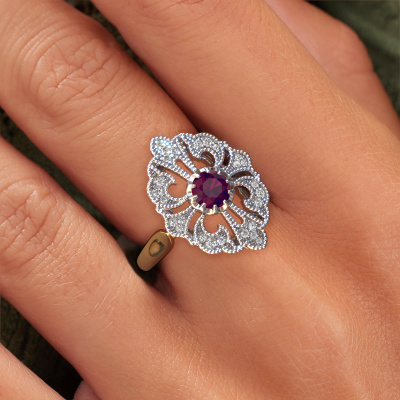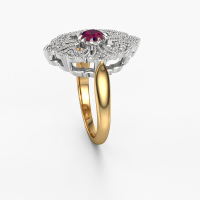 Nous avons donné le nom Naida à cette bague de fiançailles. Cette bague de fiançailles gracieuses forgée en or 14 Carat est sertie d’un rhodolite de 5 mm. Votre petite amie a-t-elle un faible pour le vintage ? Vous pouvez donc être sûr que cette bague de fiançailles forgée en or jaune conviendra à son style ! Un nouveau modèle basé sur des motifs vintage. Un peu de rêve, un beau design, surtout si vous l’ajustez encore plus à votre goût. De magnifiques rhodolites ont été sertis sur cette bague de fiançailles entourage vintage. Comme vous pouvez le constater, vous pouvez choisir vous-même une pierre précieuse qui convient à votre petite amie. Chaque pierre précieuse est soigneusement sélectionnée par nos commerçants du monde entier. Notre orfèvre ne veut travailler que les plus belles pierres précieuses sur votre bijou. Après tout, c'est la couronne de son travail ! Chaque bijou est fabriquée spécialement pour vous par nos maîtres orfèvres dans notre propre atelier.En combinant les dernières techniques modernes, associées à une fabrication ancienne, nous sommes en mesure de fabriquer nos bagues de fiançailles dans notre propre studio. Chaque bijou est fabriqué sur commande. Ceci est avantageux car nous sommes en mesure de vous proposer un prix que vous ne trouverez nulle part ailleurs.Avez-vous déjà des bague de fiançailles spécifiques en tête ? Une bague de fiançailles que vous avez vu quelque part. N'hésitez pas à nous faire part de vos souhaits et nous transformerons votre design en des bague de fiançailles uniques. Vous êtes en mesure de suivre l'évolution de la conception de vos bague de fiançailles car nous utilisons des dessins en 3D. Cela vous donnera un aperçu réaliste de votre design. Nous vous enverrons volontiers une offre sans engagement basée sur un rapport qualité / prix juste. Elle va vous étonner.Pour vous faciliter la tâche, vous pouvez facilement nous retourner tout bijou commandé dans les 30 jours suivant la livraison.