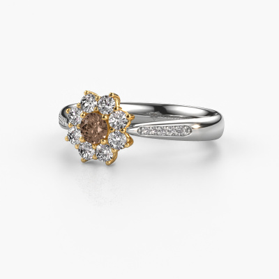La bague de fiançailles présentée ci-dessus a été nommée Carolyn 2. Nous appelons ce type de bague de fiançailles une bague entourage. Ici, de petites pierres précieuses sont serties autour de la pierre centrale dans un sertissage ouvert. Cette bague de fiançailles forgée en or 14 Carat a un diamant brun ronds de 0.15 crt en guise de pierre centrale qui est aussi entourée de petits diamants. Les petites pierres précieuses qui sont serties autour du large diamant brun sous la forme d’une belle fleur rendent cette bague de fiançailles entourage forgée en or blanc traditionnelles si spéciale. Ils donnent l'effet de former une grosse pierre précieuse étincelante. Cette bague de fiançailles peut aussi avoir un autre nom tel que bague fleur ou la bague rosette. Cependant, ces petits diamants bruns doivent tous être sertis de la même manière, afin que la lumière pénétrant dans le diamant brun ne soit pas interrompue et qu'une belle unité soit effectivement créée. Voici donc le travail de nos maîtres orfèvres. Avec la plus grande précision, chaque diamant brun soigneusement sélectionné est serti à la main dans la bague de fiançailles. Toujours et encore, la bague de fiançailles est examinée sous la lumière pour voir si l'effet spécial désiré est encore visible. Le résultat est donc une bague de fiançailles unique, où le diamant brun choisi devient littéralement le centre brillants. Vous pouvez imaginer que cette bague de fiançailles est vraiment une bague de fiançailles significative à offrir à votre amour de votre vie ! Le jour où vous lui montrerez qu'elle est le centre brillants de votre vie ! Ce bijou est unique car vous pouvez entièrement l'assembler à votre guise.Vous avez peut-être remarqué que nos prix sont en moyenne inférieurs de 30% à ceux d'un autre bijoutier. Et ce alors que la qualité de nos bijoux est même plus élevée dans la plupart des cas ! En effet, nos orfèvres fabriquent votre bague de fiançailles directement dans notre propre atelier. Cela signifie que nous n'avons pas à inclure des frais de stocks coûteux et que nous pouvons travailler n'importe quel détail directement sur votre bague de fiançailles.Notre équipe ajoute quotidiennement de nouveaux modèles à notre collection en ligne. Nos designers et orfèvres travaillent ensemble pour créer le meilleur design. Nous nous efforçons d'offrir une collection diversifiée de bijoux. Peut-être avez-vous déjà en tête un bijou en particulier ? Un bijou que vous avez trouvé quelque part. Veuillez nous contacter pour une consultation gratuite. Nous vous ferons une offre, basée sur un rapport qualité / prix juste, qui vous déconcertera.Pour vous faciliter la tâche, vous pouvez facilement nous retourner tout bijou commandé dans les 30 jours suivant la livraison.