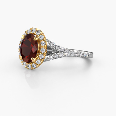 La bague de fiançailles mentionnée ci-dessus a été nommée Kimber OVL. Ce type de bague de fiançailles est appelé une bague de fiançailles solitaire pavé car elle ne comporte qu’une seule pierre centrale et les tiges de la bague de fiançailles sont également pleins. La bague de fiançailles est faite dans une combinaison d'or 14 Carat et d’or jaune et a un grenat ovale d’une de 8x6 mm, et des diamants synthétiques sont sertis sur les épaules de l’anneau. Chaque bijou est faite avec passion et amour par l'un de nos maîtres orfèvres. Cette bague de fiançailles solitaire pavé forgée en or blanc exclusives a un beau grenats ovale comme pierre centrale, avec plus de grenats sertis dans la bague pour accentuer encore plus la présence de la pierre centrale. Le sertissage à griffes autour du grenat étant ouvert, le grenat capte la lumière de tous les côtés et brille de manière optimale. Ci-dessus, vous pouvez voir comment notre orfèvre travaille la bague de fiançailles avec une extrême précision dans les moindres détails, de telle sorte que le grenat élevé puisse attirer tous les regards. Quelle belle bague de fiançailles à offrir lors de votre demande en mariage à l'amour de votre vie, à votre centre rayonnant ! En combinant les dernières techniques modernes, associées à une fabrication ancienne, nous sommes en mesure de fabriquer nos bagues de fiançailles dans notre propre studio. Chaque bijou est fabriqué sur commande. Ceci est avantageux car nous sommes en mesure de vous proposer un prix que vous ne trouverez nulle part ailleurs.Notre équipe ajoute quotidiennement de nouveaux modèles à notre collection en ligne. Nos designers et orfèvres travaillent ensemble pour créer le meilleur design. Nous nous efforçons d'offrir une collection diversifiée de bijoux. Peut-être avez-vous déjà en tête un bijou en particulier ? Un bijou que vous avez trouvé quelque part. Veuillez nous contacter pour une consultation gratuite. Nous vous ferons une offre, basée sur un rapport qualité / prix juste, qui vous déconcertera.Pour vous faciliter la tâche, vous pouvez facilement nous retourner tout bijou commandé dans les 30 jours suivant la livraison.