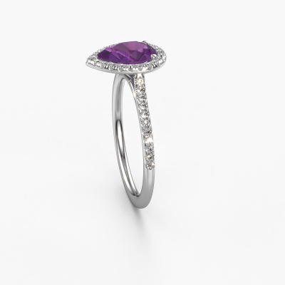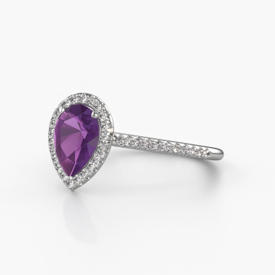 La bague de fiançailles mentionnée ci-dessus est nommée Seline per 2. Nous appelons ce type de bague de fiançailles une bague Halo. La bague de fiançailles est forgée en or et comporte un améthyste poire de la de 8x6 mm et autour duquel sont sertis de petits diamants. La largeur de cette bague de fiançailles halo forgée en platine classiques vient des plus petites pierres précieuses qui sont serties autour du large améthyste central. C’est également ce à partir de quoi cette belle bague de fiançailles tire son nom : halo signifie halo et c’est aussi l’effet que rendent les pierres précieuses plus petites. Cependant, ces pierres précieuses plus petites doivent toutes être serties de la même manière, afin que la lumière ne soit pas seulement introduite dans le améthyste et qu’un véritable halo de lumière soit créé. Et c'est ce que font nos maîtres orfèvres. Avec la plus grande précision, chaque améthyste soigneusement sélectionné est placé à la main dans la bague de fiançailles. Encore et encore, la bague de fiançailles est maintenue à la lumière pour voir si l'effet spécial est toujours visible. Le résultat est une bague de fiançailles unique, où le améthyste choisi devient littéralement le centre brillants. Vous pouvez imaginer que cette bague de fiançailles est vraiment une bague de fiançailles significative à offrir à votre amour de la vie ! Le jour où vous montrez qu’elle est votre centre brillants ! Puisque nous concevons et livrons nos propres bijoux, nous sommes en mesure de vous proposer une bague de fiançailles à un prix que vous ne pourrez pas trouver ailleurs. Une alliance est fabriquée sur commande, ce qui permet d'éviter les excédents de matériel et nous permet de vous proposer une superbe offre de prix. Nous comprenons qu'acheter votre bague de fiançailles en ligne soit un risque, mais nous vous assistons volontiers dans le processus de conception, en tenant compte de votre budget.Notre équipe de designers talentueux et passionnés ajoute chaque jour de nouveaux modèles bague de fiançailles à notre collection en ligne. Notre objectif est de pouvoir vous offrir une grande variété de bijoux. N'hésitez pas à demander un devis si vous avez des souhaits spécifiques pour votre bague de fiançailles. Nous garantissons de vous faire une offre que vous ne pourrez pas refuser.Pour vous faciliter la tâche, vous pouvez facilement nous retourner tout bijou commandé dans les 30 jours suivant la livraison.