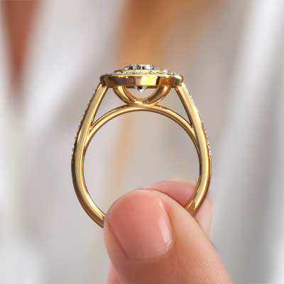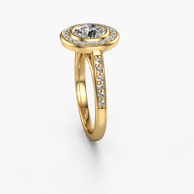 La bague de fiançailles mentionnée ci-dessus est nommée Noud 2 RND. Nous appelons ce type de bague de fiançailles une bague Halo. La bague de fiançailles est forgée en or 14 Carat et comporte un diamant ronds de la de 1.00 crt et autour duquel sont sertis de petits diamants. La largeur de cette bague de fiançailles halo forgée en or jaune luxes vient des plus petites pierres précieuses qui sont serties autour du large diamant central. C’est également ce à partir de quoi cette belle bague de fiançailles tire son nom : halo signifie halo et c’est aussi l’effet que rendent les pierres précieuses plus petites. Cependant, ces pierres précieuses plus petites doivent toutes être serties de la même manière, afin que la lumière ne soit pas seulement introduite dans le diamant et qu’un véritable halo de lumière soit créé. Et c'est ce que font nos maîtres orfèvres. Avec la plus grande précision, chaque diamant soigneusement sélectionné est placé à la main dans la bague de fiançailles. Encore et encore, la bague de fiançailles est maintenue à la lumière pour voir si l'effet spécial est toujours visible. Le résultat est une bague de fiançailles unique, où le diamant choisi devient littéralement le centre brillants. Vous pouvez imaginer que cette bague de fiançailles est vraiment une bague de fiançailles significative à offrir à votre amour de la vie ! Le jour où vous montrez qu’elle est votre centre brillants ! En combinant les dernières techniques modernes, associées à une fabrication ancienne, nous sommes en mesure de fabriquer nos bagues de fiançailles dans notre propre studio. Chaque bijou est fabriqué sur commande. Ceci est avantageux car nous sommes en mesure de vous proposer un prix que vous ne trouverez nulle part ailleurs.Avez-vous déjà des bague de fiançailles spécifiques en tête ? Une bague de fiançailles que vous avez vu quelque part. N'hésitez pas à nous faire part de vos souhaits et nous transformerons votre design en des bague de fiançailles uniques. Vous êtes en mesure de suivre l'évolution de la conception de vos bague de fiançailles car nous utilisons des dessins en 3D. Cela vous donnera un aperçu réaliste de votre design. Nous vous enverrons volontiers une offre sans engagement basée sur un rapport qualité / prix juste. Elle va vous étonner.Pour vous faciliter la tâche, vous pouvez facilement nous retourner tout bijou commandé dans les 30 jours suivant la livraison.