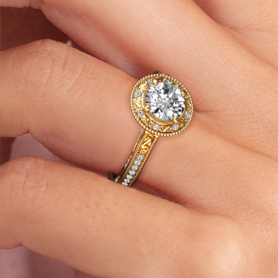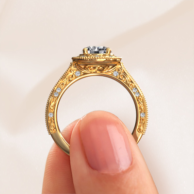 Nous avons donné le nom Alice RND à cette bague de fiançailles. Cette bague forgée en or 14 Carat est sertie d’un diamant de 1.20 crt. Cette bague est une large bague vintage forgée en or jaune unique qui fera certainement briller l’amour de votre vie ! Et c'est exactement ce que nous avons comme objectif. Un beau diamant est serti dans cette bague de fiançailles vintage. Vous pouvez, bien entendu, utiliser chaque pierre précieuses que nous proposons sur notre site La pierre précieuse sera sélectionnée avec soin, car nous pensons que seule la plus belle des pierres précieuses peut briller sur votre bague de fiançailles millegrain, qu’en dites-vous ? Notre orfèvre fabrique votre bague de fiançailles dans notre propre atelier et place le diamant dans l'anneau de la bague avec une précision extrême. Donc, elle est travaillée et polie jusqu'à ce que le résultat désiré soit visible : la bague de fiançailles parfaite pour l'amour de votre vie ! Ce bijou est fabriquées avec passion et amour par l'un de nos maîtres orfèvres.Vous avez peut-être remarqué que nos prix sont en moyenne inférieurs de 30% à ceux d'un autre bijoutier. Et ce alors que la qualité de nos bijoux est même plus élevée dans la plupart des cas ! En effet, nos orfèvres fabriquent votre bague de fiançailles directement dans notre propre atelier. Cela signifie que nous n'avons pas à inclure des frais de stocks coûteux et que nous pouvons travailler n'importe quel détail directement sur votre bague de fiançailles.Notre équipe ajoute quotidiennement de nouveaux modèles à notre collection en ligne. Nos designers et orfèvres travaillent ensemble pour créer le meilleur design. Nous nous efforçons d'offrir une collection diversifiée de bijoux. Peut-être avez-vous déjà en tête un bijou en particulier ? Un bijou que vous avez trouvé quelque part. Veuillez nous contacter pour une consultation gratuite. Nous vous ferons une offre, basée sur un rapport qualité / prix juste, qui vous déconcertera.Pour vous faciliter la tâche, vous pouvez facilement nous retourner tout bijou commandé dans les 30 jours suivant la livraison.