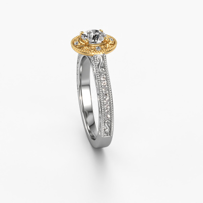 Nous avons donné le nom Alice RND à cette bague de fiançailles. Cette bague forgée en or 14 Carat est sertie d’un diamant synthétique de 0.68 crt. Cette bague est une large bague vintage forgée en or blanc unique qui fera certainement briller l’amour de votre vie ! Et c'est exactement ce que nous avons comme objectif. Un beau diamant synthétique est serti dans cette bague de fiançailles vintage. Vous pouvez, bien entendu, utiliser chaque pierre précieuses que nous proposons sur notre site La pierre précieuse sera sélectionnée avec soin, car nous pensons que seule la plus belle des pierres précieuses peut briller sur votre bague de fiançailles millegrain, qu’en dites-vous ? Notre orfèvre fabrique votre bague de fiançailles dans notre propre atelier et place le diamant synthétique dans l'anneau de la bague avec une précision extrême. Donc, elle est travaillée et polie jusqu'à ce que le résultat désiré soit visible : la bague de fiançailles parfaite pour l'amour de votre vie ! Ce bijou est fabriquées avec passion et amour par l'un de nos maîtres orfèvres.Vous avez peut-être remarqué que nos prix sont en moyenne inférieurs de 30% à ceux d'un autre bijoutier. Et ce alors que la qualité de nos bijoux est même plus élevée dans la plupart des cas ! En effet, nos orfèvres fabriquent votre bague de fiançailles directement dans notre propre atelier. Cela signifie que nous n'avons pas à inclure des frais de stocks coûteux et que nous pouvons travailler n'importe quel détail directement sur votre bague de fiançailles.Notre équipe ajoute quotidiennement de nouveaux modèles à notre collection en ligne. Nos designers et orfèvres travaillent ensemble pour créer le meilleur design. Nous nous efforçons d'offrir une collection diversifiée de bijoux. Peut-être avez-vous déjà en tête un bijou en particulier ? Un bijou que vous avez trouvé quelque part. Veuillez nous contacter pour une consultation gratuite. Nous vous ferons une offre, basée sur un rapport qualité / prix juste, qui vous déconcertera.Pour vous faciliter la tâche, vous pouvez facilement nous retourner tout bijou commandé dans les 30 jours suivant la livraison.