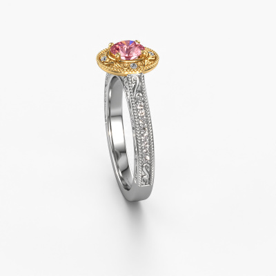 Nous avons donné le nom Alice RND à cette bague de fiançailles. Cette bague forgée en or 14 Carat est sertie d’un diamant synthétique roze de 5 mm. Cette bague est une large bague vintage forgée en or blanc unique qui fera certainement briller l’amour de votre vie ! Et c'est exactement ce que nous avons comme objectif. Un beau diamant synthétique roze est serti dans cette bague de fiançailles vintage. Vous pouvez, bien entendu, utiliser chaque pierre précieuses que nous proposons sur notre site La pierre précieuse sera sélectionnée avec soin, car nous pensons que seule la plus belle des pierres précieuses peut briller sur votre bague de fiançailles millegrain, qu’en dites-vous ? Notre orfèvre fabrique votre bague de fiançailles dans notre propre atelier et place le diamant synthétique roze dans l'anneau de la bague avec une précision extrême. Donc, elle est travaillée et polie jusqu'à ce que le résultat désiré soit visible : la bague de fiançailles parfaite pour l'amour de votre vie ! Ce bijou est fabriquées avec passion et amour par l'un de nos maîtres orfèvres.Vous avez peut-être remarqué que nos prix sont en moyenne inférieurs de 30% à ceux d'un autre bijoutier. Et ce alors que la qualité de nos bijoux est même plus élevée dans la plupart des cas ! En effet, nos orfèvres fabriquent votre bague de fiançailles directement dans notre propre atelier. Cela signifie que nous n'avons pas à inclure des frais de stocks coûteux et que nous pouvons travailler n'importe quel détail directement sur votre bague de fiançailles.Notre équipe ajoute quotidiennement de nouveaux modèles à notre collection en ligne. Nos designers et orfèvres travaillent ensemble pour créer le meilleur design. Nous nous efforçons d'offrir une collection diversifiée de bijoux. Peut-être avez-vous déjà en tête un bijou en particulier ? Un bijou que vous avez trouvé quelque part. Veuillez nous contacter pour une consultation gratuite. Nous vous ferons une offre, basée sur un rapport qualité / prix juste, qui vous déconcertera.Pour vous faciliter la tâche, vous pouvez facilement nous retourner tout bijou commandé dans les 30 jours suivant la livraison.