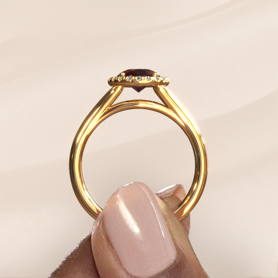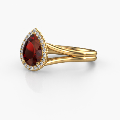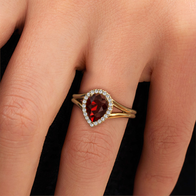 Cette bague de fiançailles porte le nom Verla pear 1. Cette bague de fiançailles élégants est forgée en or 14 Carat et est sertie d’un grenat de 8x6 mm. Cette bague de fiançailles halo et forgée en or jaune unique est un pur travail d’art ! Tous les petits détails ont été fabriqués avec beaucoup de patience et de passion par notre orfèvre. Ce métier nécessite un œil expert et une main habile pour assembler cette bague de fiançailles avec la plus grande précision. Et ce travail est précisément ce qui enthousiasme nos orfèvres ! Les plus beaux grenats sont sertis de manière large, de telle sorte qu'ils puissent rendre un effet encore meilleurs. Cela donne donc une allure supplémentaire à la bague de fiançailles. La bague de fiançailles est unique en raison de sa pierre précieuse naturelle, que nous avons spécialement sélectionnée pour cette bague. De plus, vous pouvez choisir vous-même la composition du métal précieux de votre bague. Vous aurez donc créé une bague de fiançailles unique pour la femmes la plus unique de votre vie ! Ce bijou est fabriquées avec passion et amour par l'un de nos maîtres orfèvres.En combinant les dernières techniques modernes, associées à une fabrication ancienne, nous sommes en mesure de fabriquer nos bagues de fiançailles dans notre propre studio. Chaque bijou est fabriqué sur commande. Ceci est avantageux car nous sommes en mesure de vous proposer un prix que vous ne trouverez nulle part ailleurs.Avez-vous déjà des bague de fiançailles spécifiques en tête ? Une bague de fiançailles que vous avez vu quelque part. N'hésitez pas à nous faire part de vos souhaits et nous transformerons votre design en des bague de fiançailles uniques. Vous êtes en mesure de suivre l'évolution de la conception de vos bague de fiançailles car nous utilisons des dessins en 3D. Cela vous donnera un aperçu réaliste de votre design. Nous vous enverrons volontiers une offre sans engagement basée sur un rapport qualité / prix juste. Elle va vous étonner.Pour vous faciliter la tâche, vous pouvez facilement nous retourner tout bijou commandé dans les 30 jours suivant la livraison.
