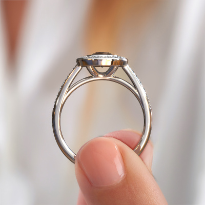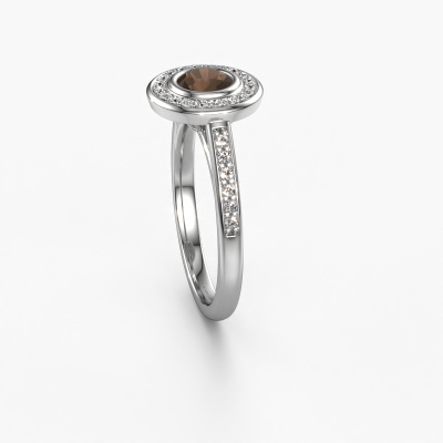 La bague de fiançailles mentionnée ci-dessus est nommée Noud 2 RND. Nous appelons ce type de bague de fiançailles une bague Halo. La bague de fiançailles est forgée en or et comporte un quartz fumé ronds de la de 5 mm et autour duquel sont sertis de petits diamants. La largeur de cette bague de fiançailles halo forgée en platine luxes vient des plus petites pierres précieuses qui sont serties autour du large quartz fumé central. C’est également ce à partir de quoi cette belle bague de fiançailles tire son nom : halo signifie halo et c’est aussi l’effet que rendent les pierres précieuses plus petites. Cependant, ces pierres précieuses plus petites doivent toutes être serties de la même manière, afin que la lumière ne soit pas seulement introduite dans le quartz fumé et qu’un véritable halo de lumière soit créé. Et c'est ce que font nos maîtres orfèvres. Avec la plus grande précision, chaque quartz fumé soigneusement sélectionné est placé à la main dans la bague de fiançailles. Encore et encore, la bague de fiançailles est maintenue à la lumière pour voir si l'effet spécial est toujours visible. Le résultat est une bague de fiançailles unique, où le quartz fumé choisi devient littéralement le centre brillants. Vous pouvez imaginer que cette bague de fiançailles est vraiment une bague de fiançailles significative à offrir à votre amour de la vie ! Le jour où vous montrez qu’elle est votre centre brillants ! En combinant les dernières techniques modernes, associées à une fabrication ancienne, nous sommes en mesure de fabriquer nos bagues de fiançailles dans notre propre studio. Chaque bijou est fabriqué sur commande. Ceci est avantageux car nous sommes en mesure de vous proposer un prix que vous ne trouverez nulle part ailleurs.Avez-vous déjà des bague de fiançailles spécifiques en tête ? Une bague de fiançailles que vous avez vu quelque part. N'hésitez pas à nous faire part de vos souhaits et nous transformerons votre design en des bague de fiançailles uniques. Vous êtes en mesure de suivre l'évolution de la conception de vos bague de fiançailles car nous utilisons des dessins en 3D. Cela vous donnera un aperçu réaliste de votre design. Nous vous enverrons volontiers une offre sans engagement basée sur un rapport qualité / prix juste. Elle va vous étonner.Pour vous faciliter la tâche, vous pouvez facilement nous retourner tout bijou commandé dans les 30 jours suivant la livraison.