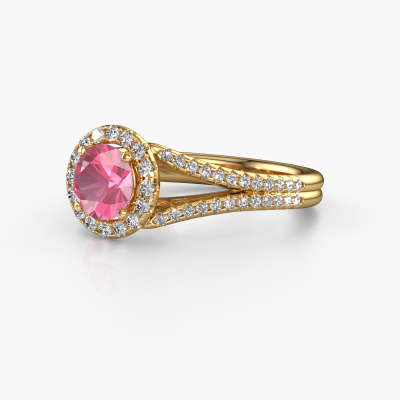 Cette bague de fiançailles porte le nom Verla rnd 2. Cette bague de fiançailles bandes séparées est forgée en or 14 Carat et est sertie d’un saphir rose de 6.5 mm. Cette bague de fiançailles halo et forgée en or jaune unique est un pur travail d’art ! Tous les petits détails ont été fabriqués avec beaucoup de patience et de passion par notre orfèvre. Ce métier nécessite un œil expert et une main habile pour assembler cette bague de fiançailles avec la plus grande précision. Et ce travail est précisément ce qui enthousiasme nos orfèvres ! Les plus beaux saphirs roses sont sertis de manière large, de telle sorte qu'ils puissent rendre un effet encore meilleurs. Cela donne donc une allure supplémentaire à la bague de fiançailles. La bague de fiançailles est unique en raison de sa pierre précieuse naturelle, que nous avons spécialement sélectionnée pour cette bague. De plus, vous pouvez choisir vous-même la composition du métal précieux de votre bague. Vous aurez donc créé une bague de fiançailles unique pour la femmes la plus unique de votre vie ! Ce bijou est spécialement conçues pour vous, avec une attention particulière portée aux détails et au design.Puisque nous concevons et livrons nos propres bijoux, nous sommes en mesure de vous proposer une bague de fiançailles à un prix que vous ne pourrez pas trouver ailleurs. Une alliance est fabriquée sur commande, ce qui permet d'éviter les excédents de matériel et nous permet de vous proposer une superbe offre de prix. Nous comprenons qu'acheter votre bague de fiançailles en ligne soit un risque, mais nous vous assistons volontiers dans le processus de conception, en tenant compte de votre budget.Notre équipe ajoute quotidiennement de nouveaux modèles à notre collection en ligne. Nos designers et orfèvres travaillent ensemble pour créer le meilleur design. Nous nous efforçons d'offrir une collection diversifiée de bijoux. Peut-être avez-vous déjà en tête un bijou en particulier ? Un bijou que vous avez trouvé quelque part. Veuillez nous contacter pour une consultation gratuite. Nous vous ferons une offre, basée sur un rapport qualité / prix juste, qui vous déconcertera.Pour vous faciliter la tâche, vous pouvez facilement nous retourner tout bijou commandé dans les 30 jours suivant la livraison.