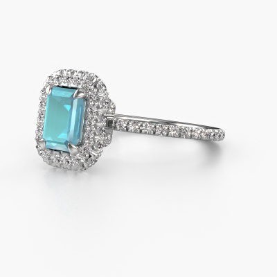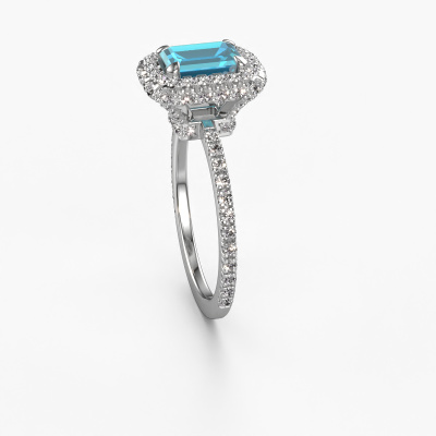La bague de fiançailles mentionnée ci-dessus est nommée Talitha EME. Nous appelons ce type de bague de fiançailles une bague Halo. La bague de fiançailles est forgée en or et comporte un topaze bleue taille émeraude de la de 7x5 mm et autour duquel sont sertis de petits diamants synthétiques. La largeur de cette bague de fiançailles halo forgée en platine luxes vient des plus petites pierres précieuses qui sont serties autour du large topaze bleue central. C’est également ce à partir de quoi cette belle bague de fiançailles tire son nom : halo signifie halo et c’est aussi l’effet que rendent les pierres précieuses plus petites. Cependant, ces pierres précieuses plus petites doivent toutes être serties de la même manière, afin que la lumière ne soit pas seulement introduite dans le topaze bleue et qu’un véritable halo de lumière soit créé. Et c'est ce que font nos maîtres orfèvres. Avec la plus grande précision, chaque topaze bleue soigneusement sélectionné est placé à la main dans la bague de fiançailles. Encore et encore, la bague de fiançailles est maintenue à la lumière pour voir si l'effet spécial est toujours visible. Le résultat est une bague de fiançailles unique, où le topaze bleue choisi devient littéralement le centre brillants. Vous pouvez imaginer que cette bague de fiançailles est vraiment une bague de fiançailles significative à offrir à votre amour de la vie ! Le jour où vous montrez qu’elle est votre centre brillants ! Qu'y a-t-il dorénavant de plus beau qu'une bague de fiançailles luxes conçue par vous-même et fabriquée à la main par nous. Vous pouvez personnaliser chaque modèle avec les différents métaux précieux et pierres précieuses. De cette façon, vous pourrez créer une bague de fiançailles unique. Cette bague peut être mise en place de plusieurs façons. Bien sûr, vous pouvez toujours nous contacter et nous serons heureux de vous aider à composer votre bague de fiançailles luxes Talitha EME. Vous aimez le design, mais vous souhaitez tout de même quelque chose qui vous convienne plus, ou bien vous souhaitez une pierre précieuse dans les bijoux que vous ne pouvez pas choisir sur notre site, contactez-nous et nous vous aiderons.Notre équipe ajoute quotidiennement de nouveaux modèles à notre collection en ligne. Nos designers et orfèvres travaillent ensemble pour créer le meilleur design. Nous nous efforçons d'offrir une collection diversifiée de bijoux. Peut-être avez-vous déjà en tête un bijou en particulier ? Un bijou que vous avez trouvé quelque part. Veuillez nous contacter pour une consultation gratuite. Nous vous ferons une offre, basée sur un rapport qualité / prix juste, qui vous déconcertera.Pour vous faciliter la tâche, vous pouvez facilement nous retourner tout bijou commandé dans les 30 jours suivant la livraison.