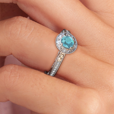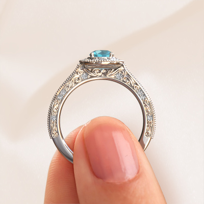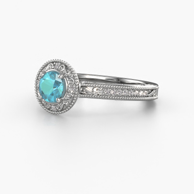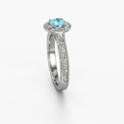 Nous avons donné le nom Alice RND à cette bague de fiançailles. Cette bague forgée en or est sertie d’un topaze bleue de 5 mm. Cette bague est une large bague vintage forgée en platine unique qui fera certainement briller l’amour de votre vie ! Et c'est exactement ce que nous avons comme objectif. Un beau topaze bleue est serti dans cette bague de fiançailles vintage. Vous pouvez, bien entendu, utiliser chaque pierre précieuses que nous proposons sur notre site La pierre précieuse sera sélectionnée avec soin, car nous pensons que seule la plus belle des pierres précieuses peut briller sur votre bague de fiançailles millegrain, qu’en dites-vous ? Notre orfèvre fabrique votre bague de fiançailles dans notre propre atelier et place le topaze bleue dans l'anneau de la bague avec une précision extrême. Donc, elle est travaillée et polie jusqu'à ce que le résultat désiré soit visible : la bague de fiançailles parfaite pour l'amour de votre vie ! Ce bijou est fabriquées avec passion et amour par l'un de nos maîtres orfèvres.Vous avez peut-être remarqué que nos prix sont en moyenne inférieurs de 30% à ceux d'un autre bijoutier. Et ce alors que la qualité de nos bijoux est même plus élevée dans la plupart des cas ! En effet, nos orfèvres fabriquent votre bague de fiançailles directement dans notre propre atelier. Cela signifie que nous n'avons pas à inclure des frais de stocks coûteux et que nous pouvons travailler n'importe quel détail directement sur votre bague de fiançailles.Notre équipe ajoute quotidiennement de nouveaux modèles à notre collection en ligne. Nos designers et orfèvres travaillent ensemble pour créer le meilleur design. Nous nous efforçons d'offrir une collection diversifiée de bijoux. Peut-être avez-vous déjà en tête un bijou en particulier ? Un bijou que vous avez trouvé quelque part. Veuillez nous contacter pour une consultation gratuite. Nous vous ferons une offre, basée sur un rapport qualité / prix juste, qui vous déconcertera.Pour vous faciliter la tâche, vous pouvez facilement nous retourner tout bijou commandé dans les 30 jours suivant la livraison.