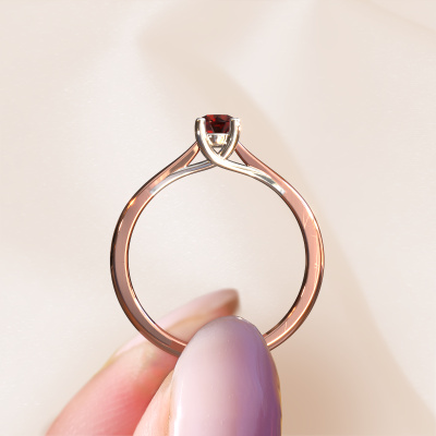 Nous avons donné le nom Mia 1 à la bague de fiançailles mentionnée ci-dessous. Ce type de bague de fiançailles s'appelle une bague de fiançailles Solitaire car elle ne contient qu’une seule pierre précieuse. La bague de fiançailles est forgée en or 14 Carat et comporte un grenat ronds d’une de 4 mm. Cette belle bague de fiançailles solitaire forgée en or rose modernes est ornée d'un magnifique grenat ronds qui rendra votre demande en mariage très spéciale. Le sertissage chaton ouvert crée un magnifique effet de lumière sur le diamants. Saviez-vous que le diamants symbolise l'amour et la fidélité éternels ? C'est précisément la raison pour laquelle c'est une magnifique pierre précieuse à mettre au centre. Notre orfèvre place la pierre précieuse en élévation sur la bague, ce qui la fera attirer tous les regards. Chaque bijou est fabriquée spécialement pour vous par nos maîtres orfèvres dans notre propre atelier.Qu'y a-t-il dorénavant de plus beau qu'une bague de fiançailles modernes conçue par vous-même et fabriquée à la main par nous. Vous pouvez personnaliser chaque modèle avec les différents métaux précieux et pierres précieuses. De cette façon, vous pourrez créer une bague de fiançailles unique. Cette bague peut être mise en place de plusieurs façons. Bien sûr, vous pouvez toujours nous contacter et nous serons heureux de vous aider à composer votre bague de fiançailles modernes Mia 1. Vous aimez le design, mais vous souhaitez tout de même quelque chose qui vous convienne plus, ou bien vous souhaitez une pierre précieuse dans les bijoux que vous ne pouvez pas choisir sur notre site, contactez-nous et nous vous aiderons.Notre équipe de designers talentueux et passionnés ajoute chaque jour de nouveaux modèles bague de fiançailles à notre collection en ligne. Notre objectif est de pouvoir vous offrir une grande variété de bijoux. N'hésitez pas à demander un devis si vous avez des souhaits spécifiques pour votre bague de fiançailles. Nous garantissons de vous faire une offre que vous ne pourrez pas refuser.Pour vous faciliter la tâche, vous pouvez facilement nous retourner tout bijou commandé dans les 30 jours suivant la livraison.