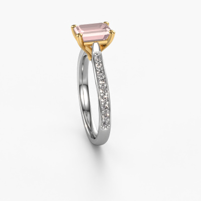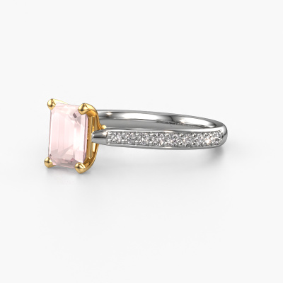 La bague de fiançailles mentionnée ci-dessus a été nommée Mignon eme 2. Ce type de bague de fiançailles est appelé une bague de fiançailles solitaire pavé car elle ne comporte qu’une seule pierre centrale et les tiges de la bague de fiançailles sont également pleins. La bague de fiançailles est faite dans une combinaison d'or 14 Carat et d’or jaune et a un champagne morganite taille émeraude d’une de 7x5 mm, et des diamants synthétiques sont sertis sur les épaules de l’anneau. Chaque bijou est faite spécialement pour vous, avec une attention particulière portée aux détails et au design. Cette bague de fiançailles solitaire pavé forgée en or blanc exclusives a un beau champagne morganite taille émeraude comme pierre centrale, avec plus de champagne morganite sertis dans la bague pour accentuer encore plus la présence de la pierre centrale. Le sertissage à griffes autour du champagne morganite étant ouvert, le champagne morganite capte la lumière de tous les côtés et brille de manière optimale. Ci-dessus, vous pouvez voir comment notre orfèvre travaille la bague de fiançailles avec une extrême précision dans les moindres détails, de telle sorte que le champagne morganite élevé puisse attirer tous les regards. Quelle belle bague de fiançailles à offrir lors de votre demande en mariage à l'amour de votre vie, à votre centre rayonnant ! Vous avez peut-être remarqué que nos prix sont en moyenne inférieurs de 30% à ceux d'un autre bijoutier. Et ce alors que la qualité de nos bijoux est même plus élevée dans la plupart des cas ! En effet, nos orfèvres fabriquent votre bague de fiançailles directement dans notre propre atelier. Cela signifie que nous n'avons pas à inclure des frais de stocks coûteux et que nous pouvons travailler n'importe quel détail directement sur votre bague de fiançailles.Avez-vous déjà des bague de fiançailles spécifiques en tête ? Une bague de fiançailles que vous avez vu quelque part. N'hésitez pas à nous faire part de vos souhaits et nous transformerons votre design en des bague de fiançailles uniques. Vous êtes en mesure de suivre l'évolution de la conception de vos bague de fiançailles car nous utilisons des dessins en 3D. Cela vous donnera un aperçu réaliste de votre design. Nous vous enverrons volontiers une offre sans engagement basée sur un rapport qualité / prix juste. Elle va vous étonner.Pour vous faciliter la tâche, vous pouvez facilement nous retourner tout bijou commandé dans les 30 jours suivant la livraison.