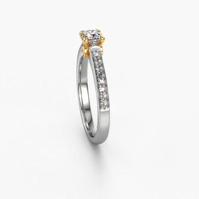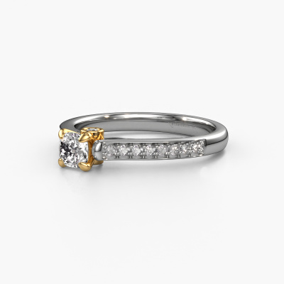 La bague de fiançailles mentionnée ci-dessus a été nommée Valorie cus 2. Ce type de bague de fiançailles est appelé une bague de fiançailles solitaire pavé car elle ne comporte qu’une seule pierre centrale et les tiges de la bague de fiançailles sont également pleins. La bague de fiançailles est faite dans une combinaison d'or 14 Carat et d’or jaune et a un diamant coussin d’une de 0.33 crt, et des diamants sont sertis sur les épaules de l’anneau. Chaque bijou est fabriquées spécialement pour vous par nos maîtres orfèvres dans notre propre atelier. Cette bague de fiançailles solitaire pavé forgée en or blanc traditionnelles a un beau diamants coussin comme pierre centrale, avec plus de diamants sertis dans la bague pour accentuer encore plus la présence de la pierre centrale. Le sertissage à griffes autour du diamant étant ouvert, le diamant capte la lumière de tous les côtés et brille de manière optimale. Ci-dessus, vous pouvez voir comment notre orfèvre travaille la bague de fiançailles avec une extrême précision dans les moindres détails, de telle sorte que le diamant élevé puisse attirer tous les regards. Quelle belle bague de fiançailles à offrir lors de votre demande en mariage à l'amour de votre vie, à votre centre rayonnant ! En combinant les dernières techniques modernes, associées à une fabrication ancienne, nous sommes en mesure de fabriquer nos bagues de fiançailles dans notre propre studio. Chaque bijou est fabriqué sur commande. Ceci est avantageux car nous sommes en mesure de vous proposer un prix que vous ne trouverez nulle part ailleurs.Notre équipe de designers talentueux et passionnés ajoute chaque jour de nouveaux modèles bague de fiançailles à notre collection en ligne. Notre objectif est de pouvoir vous offrir une grande variété de bijoux. N'hésitez pas à demander un devis si vous avez des souhaits spécifiques pour votre bague de fiançailles. Nous garantissons de vous faire une offre que vous ne pourrez pas refuser.Pour vous faciliter la tâche, vous pouvez facilement nous retourner tout bijou commandé dans les 30 jours suivant la livraison.