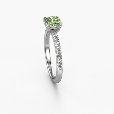 La bague de fiançailles mentionnée ci-dessus a été nommée Saskia 1 cus. Ce type de bague de fiançailles est appelé une bague de fiançailles solitaire pavé car elle ne comporte qu’une seule pierre centrale et les tiges de la bague de fiançailles sont également pleins. La bague de fiançailles est faite dans une combinaison d'or 14 Carat et d’or blanc et a un diamants synthétiques vert coussin d’une de 5.5 mm, et des diamants sont sertis sur les épaules de l’anneau. Chaque bijou est fabriquée par une équipe d'orfèvres et de designers motivés. Cela permettra à cette pièce unique d'attirer tous les regards. Cette bague de fiançailles solitaire pavé forgée en or blanc uniques a un beau diamants synthétiques vert coussin comme pierre centrale, avec plus de diamants synthétiques vert sertis dans la bague pour accentuer encore plus la présence de la pierre centrale. Le sertissage à griffes autour du diamants synthétiques vert étant ouvert, le diamants synthétiques vert capte la lumière de tous les côtés et brille de manière optimale. Ci-dessus, vous pouvez voir comment notre orfèvre travaille la bague de fiançailles avec une extrême précision dans les moindres détails, de telle sorte que le diamants synthétiques vert élevé puisse attirer tous les regards. Quelle belle bague de fiançailles à offrir lors de votre demande en mariage à l'amour de votre vie, à votre centre rayonnant ! En combinant les dernières techniques modernes, associées à une fabrication ancienne, nous sommes en mesure de fabriquer nos bagues de fiançailles dans notre propre studio. Chaque bijou est fabriqué sur commande. Ceci est avantageux car nous sommes en mesure de vous proposer un prix que vous ne trouverez nulle part ailleurs.Notre équipe ajoute quotidiennement de nouveaux modèles à notre collection en ligne. Nos designers et orfèvres travaillent ensemble pour créer le meilleur design. Nous nous efforçons d'offrir une collection diversifiée de bijoux. Peut-être avez-vous déjà en tête un bijou en particulier ? Un bijou que vous avez trouvé quelque part. Veuillez nous contacter pour une consultation gratuite. Nous vous ferons une offre, basée sur un rapport qualité / prix juste, qui vous déconcertera.Pour vous faciliter la tâche, vous pouvez facilement nous retourner tout bijou commandé dans les 30 jours suivant la livraison.