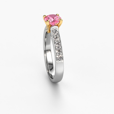 La bague de fiançailles mentionnée ci-dessus a été nommée Valorie RND 2. Ce type de bague de fiançailles est appelé une bague de fiançailles solitaire pavé car elle ne comporte qu’une seule pierre centrale et les tiges de la bague de fiançailles sont également pleins. La bague de fiançailles est faite dans une combinaison d'or 14 Carat et d’or jaune et a un saphir rose ronds d’une de 6.5 mm, et des diamants synthétiques sont sertis sur les épaules de l’anneau. Chaque bijou est faite spécialement pour vous, avec une attention particulière portée aux détails et au design. Cette bague de fiançailles solitaire pavé forgée en or blanc modernes a un beau saphirs roses ronds comme pierre centrale, avec plus de saphirs roses sertis dans la bague pour accentuer encore plus la présence de la pierre centrale. Le sertissage à griffes autour du saphir rose étant ouvert, le saphir rose capte la lumière de tous les côtés et brille de manière optimale. Ci-dessus, vous pouvez voir comment notre orfèvre travaille la bague de fiançailles avec une extrême précision dans les moindres détails, de telle sorte que le saphir rose élevé puisse attirer tous les regards. Quelle belle bague de fiançailles à offrir lors de votre demande en mariage à l'amour de votre vie, à votre centre rayonnant ! Qu'y a-t-il dorénavant de plus beau qu'une bague de fiançailles modernes conçue par vous-même et fabriquée à la main par nous. Vous pouvez personnaliser chaque modèle avec les différents métaux précieux et pierres précieuses. De cette façon, vous pourrez créer une bague de fiançailles unique. Cette bague peut être mise en place de plusieurs façons. Bien sûr, vous pouvez toujours nous contacter et nous serons heureux de vous aider à composer votre bague de fiançailles modernes Valorie RND 2. Vous aimez le design, mais vous souhaitez tout de même quelque chose qui vous convienne plus, ou bien vous souhaitez une pierre précieuse dans les bijoux que vous ne pouvez pas choisir sur notre site, contactez-nous et nous vous aiderons.Notre équipe de designers talentueux et passionnés ajoute chaque jour de nouveaux modèles bague de fiançailles à notre collection en ligne. Notre objectif est de pouvoir vous offrir une grande variété de bijoux. N'hésitez pas à demander un devis si vous avez des souhaits spécifiques pour votre bague de fiançailles. Nous garantissons de vous faire une offre que vous ne pourrez pas refuser.Pour vous faciliter la tâche, vous pouvez facilement nous retourner tout bijou commandé dans les 30 jours suivant la livraison.