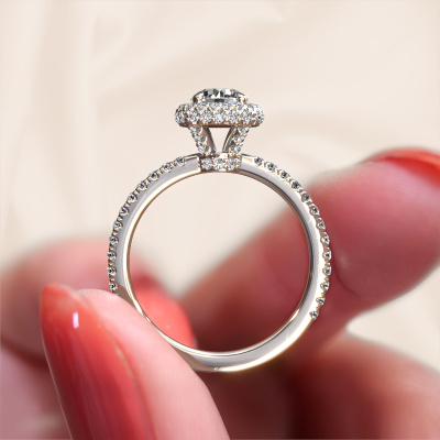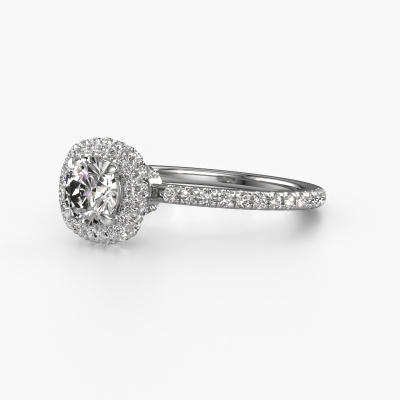 La bague de fiançailles mentionnée ci-dessus est nommée Talitha RND. Nous appelons ce type de bague de fiançailles une bague Halo. La bague de fiançailles est forgée en or 14 Carat et comporte un diamant ronds de la de 0.60 crt et autour duquel sont sertis de petits diamants synthétiques. La largeur de cette bague de fiançailles halo forgée en or blanc exclusives vient des plus petites pierres précieuses qui sont serties autour du large diamant central. C’est également ce à partir de quoi cette belle bague de fiançailles tire son nom : halo signifie halo et c’est aussi l’effet que rendent les pierres précieuses plus petites. Cependant, ces pierres précieuses plus petites doivent toutes être serties de la même manière, afin que la lumière ne soit pas seulement introduite dans le diamant et qu’un véritable halo de lumière soit créé. Et c'est ce que font nos maîtres orfèvres. Avec la plus grande précision, chaque diamant soigneusement sélectionné est placé à la main dans la bague de fiançailles. Encore et encore, la bague de fiançailles est maintenue à la lumière pour voir si l'effet spécial est toujours visible. Le résultat est une bague de fiançailles unique, où le diamant choisi devient littéralement le centre brillants. Vous pouvez imaginer que cette bague de fiançailles est vraiment une bague de fiançailles significative à offrir à votre amour de la vie ! Le jour où vous montrez qu’elle est votre centre brillants ! Vous avez peut-être remarqué que nos prix sont en moyenne inférieurs de 30% à ceux d'un autre bijoutier. Et ce alors que la qualité de nos bijoux est même plus élevée dans la plupart des cas ! En effet, nos orfèvres fabriquent votre bague de fiançailles directement dans notre propre atelier. Cela signifie que nous n'avons pas à inclure des frais de stocks coûteux et que nous pouvons travailler n'importe quel détail directement sur votre bague de fiançailles.Notre équipe ajoute quotidiennement de nouveaux modèles à notre collection en ligne. Nos designers et orfèvres travaillent ensemble pour créer le meilleur design. Nous nous efforçons d'offrir une collection diversifiée de bijoux. Peut-être avez-vous déjà en tête un bijou en particulier ? Un bijou que vous avez trouvé quelque part. Veuillez nous contacter pour une consultation gratuite. Nous vous ferons une offre, basée sur un rapport qualité / prix juste, qui vous déconcertera.Pour vous faciliter la tâche, vous pouvez facilement nous retourner tout bijou commandé dans les 30 jours suivant la livraison.