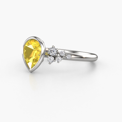 Nous appelons cette bague de fiançailles Aliyah PER. Cette bague forgée en or 14 Carat est sertie d’un saphir jaune. Vous recherchez une bague de fiançailles forgée en or blanc unique et au look tendances ? Voici donc une belle bague magnifique que vous pouvez entièrement ajuster à votre goût. Un saphir jaune magnifique est utilisé dans cette bague de fiançailles tendances. Celui-ci est sélectionné avec soin, car seule les plus belles des pierres précieuses peuvent briller sur votre bague de fiançailles beaux. Notre orfèvre fabrique votre bague de fiançailles dans notre propre atelier et place le saphir jaune dans la bague avec une précision extrême. Donc, la bague est travaillée et polie jusqu'à ce que le résultat désiré soit visible : la bague de fiançailles parfaite pour l'amour de votre vie ! Qu'y a-t-il dorénavant de plus beau qu'une bague de fiançailles tendances conçue par vous-même et fabriquée à la main par nous. Vous pouvez personnaliser chaque modèle avec les différents métaux précieux et pierres précieuses. De cette façon, vous pourrez créer une bague de fiançailles unique. Cette bague peut être mise en place de plusieurs façons. Bien sûr, vous pouvez toujours nous contacter et nous serons heureux de vous aider à composer votre bague de fiançailles tendances Aliyah PER. Vous aimez le design, mais vous souhaitez tout de même quelque chose qui vous convienne plus, ou bien vous souhaitez une pierre précieuse dans les bijoux que vous ne pouvez pas choisir sur notre site, contactez-nous et nous vous aiderons.Notre équipe ajoute quotidiennement de nouveaux modèles à notre collection en ligne. Nos designers et orfèvres travaillent ensemble pour créer le meilleur design. Nous nous efforçons d'offrir une collection diversifiée de bijoux. Peut-être avez-vous déjà en tête un bijou en particulier ? Un bijou que vous avez trouvé quelque part. Veuillez nous contacter pour une consultation gratuite. Nous vous ferons une offre, basée sur un rapport qualité / prix juste, qui vous déconcertera.Pour vous faciliter la tâche, vous pouvez facilement nous retourner tout bijou commandé dans les 30 jours suivant la livraison.