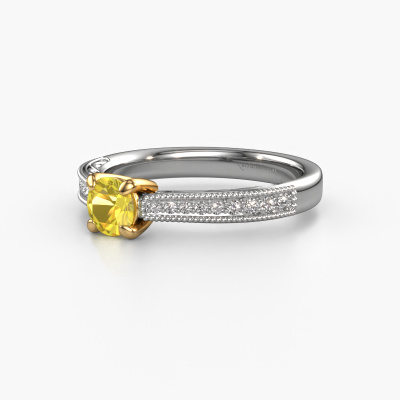 Cette bague de fiançailles porte le nom Shonta RND. Cette bague de fiançailles forgée en or 14 Carat est sertie d’un saphir jaune de 4.7 mm. Cette bague de fiançailles forgée en or blanc en filigrane est un chef-d’œuvre en soi. Un magnifique design de fils sophistiqués qui forment un ensemble unique. Et simultanément, un beau défi pour nos orfèvres passionnés ! Avec un grand dévouement, de la patience et une grande précision, ils forgent cette bague de fiançailles spécialement pour votre bien-aimée. Tout est fabriqué à la main, de telle sorte que chaque fil puisse être parfaitement travaillé dans les moindres détails. Un long processus de forgeage, de travail et de polissage, jusqu'à ce que le maître forgeron, gardant la bague de fiançailles à la lumière, soit satisfait du résultat... Une bague de fiançailles parfaite dont il est vraiment fier. C'est la raison pour laquelle cette bague de fiançailles en filigrane vintage est aussi une large bague de fiançailles à offrir à l'amour de votre vie ! Vous allez bientôt faire votre demande à cette personne, et cette bague de fiançailles unique n’est faite que pour cette seule personne ! Merveilleux, non ? Ce bijou est fabriquée spécialement pour vous par nos maîtres orfèvres dans notre propre atelier.Qu'y a-t-il dorénavant de plus beau qu'une bague de fiançailles vintage conçue par vous-même et fabriquée à la main par nous. Vous pouvez personnaliser chaque modèle avec les différents métaux précieux et pierres précieuses. De cette façon, vous pourrez créer une bague de fiançailles unique. Cette bague peut être mise en place de plusieurs façons. Bien sûr, vous pouvez toujours nous contacter et nous serons heureux de vous aider à composer votre bague de fiançailles vintage Shonta RND. Vous aimez le design, mais vous souhaitez tout de même quelque chose qui vous convienne plus, ou bien vous souhaitez une pierre précieuse dans les bijoux que vous ne pouvez pas choisir sur notre site, contactez-nous et nous vous aiderons.Notre équipe ajoute quotidiennement de nouveaux modèles à notre collection en ligne. Nos designers et orfèvres travaillent ensemble pour créer le meilleur design. Nous nous efforçons d'offrir une collection diversifiée de bijoux. Peut-être avez-vous déjà en tête un bijou en particulier ? Un bijou que vous avez trouvé quelque part. Veuillez nous contacter pour une consultation gratuite. Nous vous ferons une offre, basée sur un rapport qualité / prix juste, qui vous déconcertera.Pour vous faciliter la tâche, vous pouvez facilement nous retourner tout bijou commandé dans les 30 jours suivant la livraison.