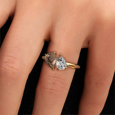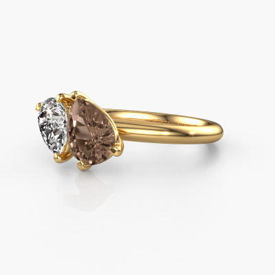 Nous appelons cette bague de fiançailles Toi et Moi PER-PER. Cette bague forgée en or 14 Carat est sertie d’un diamant brun. Vous recherchez une bague de fiançailles forgée en or jaune unique et au look à la mode ? Voici donc une belle bague magnifique que vous pouvez entièrement ajuster à votre goût. Un diamant brun magnifique est utilisé dans cette bague de fiançailles à la mode. Celui-ci est sélectionné avec soin, car seule les plus belles des pierres précieuses peuvent briller sur votre bague de fiançailles à la mode. Notre orfèvre fabrique votre bague de fiançailles dans notre propre atelier et place le diamant brun dans la bague avec une précision extrême. Donc, la bague est travaillée et polie jusqu'à ce que le résultat désiré soit visible : la bague de fiançailles parfaite pour l'amour de votre vie ! Saviez-vous que nous offrons la garantie du meilleur prix pour votre bague de fiançailles? Cela est possible car tous nos bijoux sont fabriqués à la main dans notre propre atelier. Nous n'avons pas de frais de stocks qui sont coûteux, et nous fabriquons votre bague uniquement une fois que vous l'avez commandée. Grâce au fait que nous ayons toute la production du bijou en main, nous pouvons vous informer sur toutes les caractéristiques de cette bague de fiançailles. C’est précisément parce que l’achat d’une bague en ligne est une expérience excitante que nous comprenons qu’il est plus confortable pour vous de connaître toutes les caractéristiques de votre bague.Notre équipe de designers talentueux et passionnés ajoute chaque jour de nouveaux modèles bague de fiançailles à notre collection en ligne. Notre objectif est de pouvoir vous offrir une grande variété de bijoux. N'hésitez pas à demander un devis si vous avez des souhaits spécifiques pour votre bague de fiançailles. Nous garantissons de vous faire une offre que vous ne pourrez pas refuser.Pour vous faciliter la tâche, vous pouvez facilement nous retourner tout bijou commandé dans les 30 jours suivant la livraison.