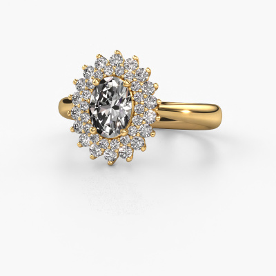 La bague de fiançailles présentée ci-dessus a été nommée Alina 1. Nous appelons ce type de bague de fiançailles une bague entourage, dans laquelle de petites pierres précieuses sont serties autour de la pierre centrale dans un sertissage ouvert. Cette bague de fiançailles forgée en or 14 Carat a un diamant custom ovale de 7x5 mm en guise de pierre centrale qui est aussi entourée de petits diamants. La particularité de cette bague de fiançailles classiques forgée en or jaune est sa forme : les petites pierres précieuses et le diamant custom forment une belle fleur qui semble se fondre en une large pierre précieuse étincelante. Cette bague de fiançailles est aussi appelée la bague de fiançailles fleur ou rosette. Nos maîtres orfèvres veillent à ce que les plus petits diamants soient tous sertis de la même manière, afin que la lumière passant au travers du diamant custom ne soit pas interrompue et qu'une belle unité soit créée. Avec un œil expérimenté et une main habile, chaque diamant custom soigneusement sélectionné est serti dans la bague de fiançailles. Toujours et encore, la bague de fiançailles est examinée sous la lumière pour voir si l'effet spécial désiré est encore visible. Le résultat est une bague de fiançailles unique, où le diamant custom choisi devient littéralement le centre brillants. Quelle bague de fiançailles belle et significative à offrir au centre qui brille dans votre vie ! Vous avez peut-être remarqué que nos prix sont en moyenne inférieurs de 30% à ceux d'un autre bijoutier. Et ce alors que la qualité de nos bijoux est même plus élevée dans la plupart des cas ! En effet, nos orfèvres fabriquent votre bague de fiançailles directement dans notre propre atelier. Cela signifie que nous n'avons pas à inclure des frais de stocks coûteux et que nous pouvons travailler n'importe quel détail directement sur votre bague de fiançailles.Notre équipe de designers talentueux et passionnés ajoute chaque jour de nouveaux modèles bague de fiançailles à notre collection en ligne. Notre objectif est de pouvoir vous offrir une grande variété de bijoux. N'hésitez pas à demander un devis si vous avez des souhaits spécifiques pour votre bague de fiançailles. Nous garantissons de vous faire une offre que vous ne pourrez pas refuser.Pour vous faciliter la tâche, vous pouvez facilement nous retourner tout bijou commandé dans les 30 jours suivant la livraison.