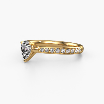 La bague de fiançailles mentionnée ci-dessus a été nommée Mignon per 2. Ce type de bague de fiançailles est appelé une bague de fiançailles solitaire pavé car elle ne comporte qu’une seule pierre centrale et les tiges de la bague de fiançailles sont également pleins. La bague de fiançailles est faite dans une combinaison d'or 14 Carat et d’or jaune et a un diamant poire d’une de 0.45 crt, et des diamants sont sertis sur les épaules de l’anneau. Chaque bijou est fabriquée spécialement pour vous par nos maîtres orfèvres dans notre propre atelier. Cette bague de fiançailles solitaire pavé forgée en or jaune tendances a un beau diamants poire comme pierre centrale, avec plus de diamants sertis dans la bague pour accentuer encore plus la présence de la pierre centrale. Le sertissage à griffes autour du diamant étant ouvert, le diamant capte la lumière de tous les côtés et brille de manière optimale. Ci-dessus, vous pouvez voir comment notre orfèvre travaille la bague de fiançailles avec une extrême précision dans les moindres détails, de telle sorte que le diamant élevé puisse attirer tous les regards. Quelle belle bague de fiançailles à offrir lors de votre demande en mariage à l'amour de votre vie, à votre centre rayonnant ! Vous avez peut-être remarqué que nos prix sont en moyenne inférieurs de 30% à ceux d'un autre bijoutier. Et ce alors que la qualité de nos bijoux est même plus élevée dans la plupart des cas ! En effet, nos orfèvres fabriquent votre bague de fiançailles directement dans notre propre atelier. Cela signifie que nous n'avons pas à inclure des frais de stocks coûteux et que nous pouvons travailler n'importe quel détail directement sur votre bague de fiançailles.Notre équipe ajoute quotidiennement de nouveaux modèles à notre collection en ligne. Nos designers et orfèvres travaillent ensemble pour créer le meilleur design. Nous nous efforçons d'offrir une collection diversifiée de bijoux. Peut-être avez-vous déjà en tête un bijou en particulier ? Un bijou que vous avez trouvé quelque part. Veuillez nous contacter pour une consultation gratuite. Nous vous ferons une offre, basée sur un rapport qualité / prix juste, qui vous déconcertera.Pour vous faciliter la tâche, vous pouvez facilement nous retourner tout bijou commandé dans les 30 jours suivant la livraison.