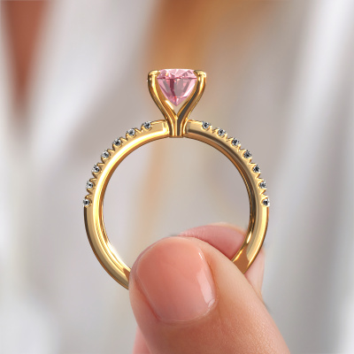 La bague de fiançailles mentionnée ci-dessus a été nommée Crystal OVL 2. Ce type de bague de fiançailles est appelé une bague de fiançailles solitaire pavé car elle ne comporte qu’une seule pierre centrale et les tiges de la bague de fiançailles sont également pleins. La bague de fiançailles est faite dans une combinaison d'or 14 Carat et d’or jaune et a un diamant synthétique roze ovale d’une de 9x7 mm, et des diamants synthétiques sont sertis sur les épaules de l’anneau. Chaque bijou est fabriquée spécialement pour vous par nos maîtres orfèvres dans notre propre atelier. Cette bague de fiançailles solitaire pavé forgée en or jaune exclusives a un beau diamant synthétique roze ovale comme pierre centrale, avec plus de diamant synthétique roze sertis dans la bague pour accentuer encore plus la présence de la pierre centrale. Le sertissage à griffes autour du diamant synthétique roze étant ouvert, le diamant synthétique roze capte la lumière de tous les côtés et brille de manière optimale. Ci-dessus, vous pouvez voir comment notre orfèvre travaille la bague de fiançailles avec une extrême précision dans les moindres détails, de telle sorte que le diamant synthétique roze élevé puisse attirer tous les regards. Quelle belle bague de fiançailles à offrir lors de votre demande en mariage à l'amour de votre vie, à votre centre rayonnant ! En combinant les dernières techniques modernes, associées à une fabrication ancienne, nous sommes en mesure de fabriquer nos bagues de fiançailles dans notre propre studio. Chaque bijou est fabriqué sur commande. Ceci est avantageux car nous sommes en mesure de vous proposer un prix que vous ne trouverez nulle part ailleurs.Notre équipe ajoute quotidiennement de nouveaux modèles à notre collection en ligne. Nos designers et orfèvres travaillent ensemble pour créer le meilleur design. Nous nous efforçons d'offrir une collection diversifiée de bijoux. Peut-être avez-vous déjà en tête un bijou en particulier ? Un bijou que vous avez trouvé quelque part. Veuillez nous contacter pour une consultation gratuite. Nous vous ferons une offre, basée sur un rapport qualité / prix juste, qui vous déconcertera.Pour vous faciliter la tâche, vous pouvez facilement nous retourner tout bijou commandé dans les 30 jours suivant la livraison.