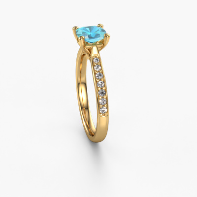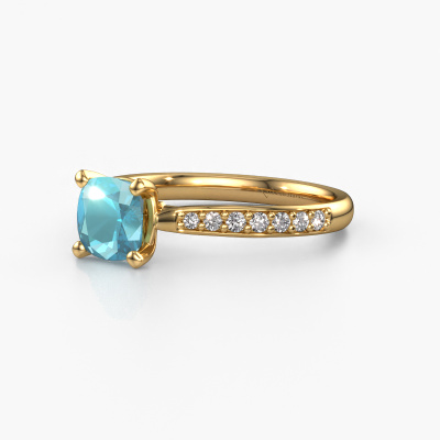 La bague de fiançailles mentionnée ci-dessus a été nommée Mignon cus 2. Ce type de bague de fiançailles est appelé une bague de fiançailles solitaire pavé car elle ne comporte qu’une seule pierre centrale et les tiges de la bague de fiançailles sont également pleins. La bague de fiançailles est faite dans une combinaison d'or 14 Carat et d’or jaune et a un topaze bleue coussin d’une de 6 mm, et des diamants synthétiques sont sertis sur les épaules de l’anneau. Chaque bijou est faite avec passion et amour par l'un de nos maîtres orfèvres. Cette bague de fiançailles solitaire pavé forgée en or jaune exclusives a un beau topaze bleue coussin comme pierre centrale, avec plus de topaze bleue sertis dans la bague pour accentuer encore plus la présence de la pierre centrale. Le sertissage à griffes autour du topaze bleue étant ouvert, le topaze bleue capte la lumière de tous les côtés et brille de manière optimale. Ci-dessus, vous pouvez voir comment notre orfèvre travaille la bague de fiançailles avec une extrême précision dans les moindres détails, de telle sorte que le topaze bleue élevé puisse attirer tous les regards. Quelle belle bague de fiançailles à offrir lors de votre demande en mariage à l'amour de votre vie, à votre centre rayonnant ! Nos orfèvres ne fabriqueront votre bague de fiançailles qu'une fois que vous l'aurez commandée. Nous ne faisons pas de stock. L'avantage de cela est que nous n'avons pas à inclure les frais de stockage dans nos prix, et nous pouvons donc vous offrir des bijoux à un prix très bas.Notre équipe ajoute quotidiennement de nouveaux modèles à notre collection en ligne. Nos designers et orfèvres travaillent ensemble pour créer le meilleur design. Nous nous efforçons d'offrir une collection diversifiée de bijoux. Peut-être avez-vous déjà en tête un bijou en particulier ? Un bijou que vous avez trouvé quelque part. Veuillez nous contacter pour une consultation gratuite. Nous vous ferons une offre, basée sur un rapport qualité / prix juste, qui vous déconcertera.Pour vous faciliter la tâche, vous pouvez facilement nous retourner tout bijou commandé dans les 30 jours suivant la livraison.