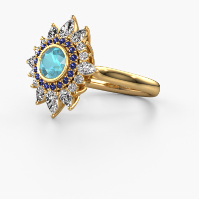 Cette bague de fiançailles porte le nom Tianna. Cette bague de fiançailles forgée en or 14 Carat est sertie d’un topaze bleue. Cette bague de fiançailles unique est une large bague vintage forgée en or jaune qui laissera certainement briller l’amour de votre vie ! Et c'est exactement ce que nous avons comme objectif. De magnifiques topaze bleue ont été sertis sur cette bague de fiançailles vintage. Vous pouvez, bien entendu, utiliser chaque pierre précieuse que nous proposons sur notre site. La pierre précieuse sera sélectionnée avec soin, car nous pensons que seule la plus belle des pierres précieuses peut briller sur votre bague de fiançailles, qu’en dites-vous ? Notre orfèvre fabrique votre bague de fiançailles dans notre propre atelier et place le topaze bleue dans son anneau avec une précision extrême. Puis, elle est travaillée et polie jusqu'à ce que le résultat soit visible : la bague de fiançailles parfaite pour l'amour de votre vie ! Ce bijou est fabriquées spécialement pour vous par nos maîtres orfèvres dans notre propre atelier.Puisque nous concevons et livrons nos propres bijoux, nous sommes en mesure de vous proposer une bague de fiançailles à un prix que vous ne pourrez pas trouver ailleurs. Une alliance est fabriquée sur commande, ce qui permet d'éviter les excédents de matériel et nous permet de vous proposer une superbe offre de prix. Nous comprenons qu'acheter votre bague de fiançailles en ligne soit un risque, mais nous vous assistons volontiers dans le processus de conception, en tenant compte de votre budget.Notre équipe ajoute quotidiennement de nouveaux modèles à notre collection en ligne. Nos designers et orfèvres travaillent ensemble pour créer le meilleur design. Nous nous efforçons d'offrir une collection diversifiée de bijoux. Peut-être avez-vous déjà en tête un bijou en particulier ? Un bijou que vous avez trouvé quelque part. Veuillez nous contacter pour une consultation gratuite. Nous vous ferons une offre, basée sur un rapport qualité / prix juste, qui vous déconcertera.Pour vous faciliter la tâche, vous pouvez facilement nous retourner tout bijou commandé dans les 30 jours suivant la livraison.
