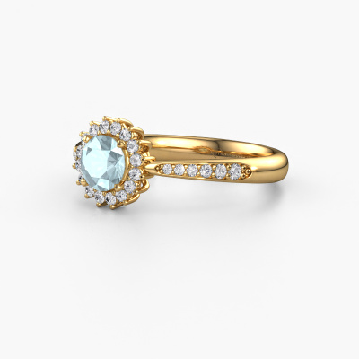 La bague de fiançailles présentée ci-dessus a été nommée Tilly RND 2. Nous appelons ce type de bague de fiançailles une bague entourage, dans laquelle de petites pierres précieuses sont serties autour de la pierre centrale dans un sertissage ouvert. Cette bague de fiançailles forgée en or 14 Carat a un aigue-marine ronds de 5 mm en guise de pierre centrale qui est aussi entourée de petits diamants. Si vous regardez cette bague de fiançailles entourage forgée en or jaune, vous avez l'impression que les plus petites pierres précieuses, ainsi que le grand aigue-marine, fusionnent en une seule grosse pierre scintillante, sous la forme d’une belle fleur. Cette bague de fiançailles peut aussi avoir un autre nom tel que bague fleur ou la bague rosette. Cependant, les diamants plus petits doivent tous être sertis de la même manière, afin que la lumière passant au travers du aigue-marine ne soit pas interrompue et qu'une véritable unité soit créée. Voici donc le travail de nos maîtres orfèvres. Avec la plus grande précision, chaque aigue-marine soigneusement sélectionné est serti à la main dans la bague de fiançailles. Toujours et encore, la bague de fiançailles est surveillée de près sous la lumière pour voir si l'effet spécial désiré est toujours visible. Nos orfèvres ne fabriqueront votre bague de fiançailles qu'une fois que vous l'aurez commandée. Nous ne faisons pas de stock. L'avantage de cela est que nous n'avons pas à inclure les frais de stockage dans nos prix, et nous pouvons donc vous offrir des bijoux à un prix très bas.Notre équipe ajoute quotidiennement de nouveaux modèles à notre collection en ligne. Nos designers et orfèvres travaillent ensemble pour créer le meilleur design. Nous nous efforçons d'offrir une collection diversifiée de bijoux. Peut-être avez-vous déjà en tête un bijou en particulier ? Un bijou que vous avez trouvé quelque part. Veuillez nous contacter pour une consultation gratuite. Nous vous ferons une offre, basée sur un rapport qualité / prix juste, qui vous déconcertera.Pour vous faciliter la tâche, vous pouvez facilement nous retourner tout bijou commandé dans les 30 jours suivant la livraison.