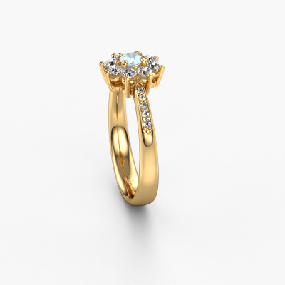 La bague de fiançailles présentée ci-dessus a été nommée Camille 2. Nous appelons ce type de bague de fiançailles une bague flower, dans laquelle de petites pierres précieuses sont serties autour de la pierre centrale dans un sertissage ouvert. Cette bague de fiançailles forgée en or 14 Carat a un aigue-marine ronds de 3.4 mm en guise de pierre centrale qui est aussi entourée de petits diamants. Si vous regardez cette bague de fiançailles flower forgée en or jaune, vous avez l'impression que les plus petites pierres précieuses, ainsi que le grand aigue-marine, fusionnent en une seule grosse pierre scintillante, sous la forme d’une belle fleur. Cette bague de fiançailles peut aussi avoir un autre nom tel que bague fleur ou la bague rosette. Cependant, les diamants plus petits doivent tous être sertis de la même manière, afin que la lumière passant au travers du aigue-marine ne soit pas interrompue et qu'une véritable unité soit créée. Voici donc le travail de nos maîtres orfèvres. Avec la plus grande précision, chaque aigue-marine soigneusement sélectionné est serti à la main dans la bague de fiançailles. Toujours et encore, la bague de fiançailles est surveillée de près sous la lumière pour voir si l'effet spécial désiré est toujours visible. Puisque nous concevons et livrons nos propres bijoux, nous sommes en mesure de vous proposer une bague de fiançailles à un prix que vous ne pourrez pas trouver ailleurs. Une alliance est fabriquée sur commande, ce qui permet d'éviter les excédents de matériel et nous permet de vous proposer une superbe offre de prix. Nous comprenons qu'acheter votre bague de fiançailles en ligne soit un risque, mais nous vous assistons volontiers dans le processus de conception, en tenant compte de votre budget.Notre équipe ajoute quotidiennement de nouveaux modèles à notre collection en ligne. Nos designers et orfèvres travaillent ensemble pour créer le meilleur design. Nous nous efforçons d'offrir une collection diversifiée de bijoux. Peut-être avez-vous déjà en tête un bijou en particulier ? Un bijou que vous avez trouvé quelque part. Veuillez nous contacter pour une consultation gratuite. Nous vous ferons une offre, basée sur un rapport qualité / prix juste, qui vous déconcertera.Pour vous faciliter la tâche, vous pouvez facilement nous retourner tout bijou commandé dans les 30 jours suivant la livraison.
