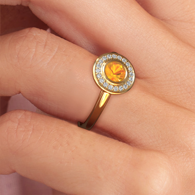 La bague de fiançailles mentionnée ci-dessus est nommée Noud 1 RND. Nous appelons ce type de bague de fiançailles une bague Halo. La bague de fiançailles est forgée en or 14 Carat et comporte un citrine ronds de la de 4.7 mm et autour duquel sont sertis de petits diamants. La largeur de cette bague de fiançailles halo forgée en or jaune traditionnelles vient des plus petites pierres précieuses qui sont serties autour du large citrine central. C’est également ce à partir de quoi cette belle bague de fiançailles tire son nom : halo signifie halo et c’est aussi l’effet que rendent les pierres précieuses plus petites. Cependant, ces pierres précieuses plus petites doivent toutes être serties de la même manière, afin que la lumière ne soit pas seulement introduite dans le citrine et qu’un véritable halo de lumière soit créé. Et c'est ce que font nos maîtres orfèvres. Avec la plus grande précision, chaque citrine soigneusement sélectionné est placé à la main dans la bague de fiançailles. Encore et encore, la bague de fiançailles est maintenue à la lumière pour voir si l'effet spécial est toujours visible. Le résultat est une bague de fiançailles unique, où le citrine choisi devient littéralement le centre brillants. Vous pouvez imaginer que cette bague de fiançailles est vraiment une bague de fiançailles significative à offrir à votre amour de la vie ! Le jour où vous montrez qu’elle est votre centre brillants ! En combinant les dernières techniques modernes, associées à une fabrication ancienne, nous sommes en mesure de fabriquer nos bagues de fiançailles dans notre propre studio. Chaque bijou est fabriqué sur commande. Ceci est avantageux car nous sommes en mesure de vous proposer un prix que vous ne trouverez nulle part ailleurs.Avez-vous déjà des bague de fiançailles spécifiques en tête ? Une bague de fiançailles que vous avez vu quelque part. N'hésitez pas à nous faire part de vos souhaits et nous transformerons votre design en des bague de fiançailles uniques. Vous êtes en mesure de suivre l'évolution de la conception de vos bague de fiançailles car nous utilisons des dessins en 3D. Cela vous donnera un aperçu réaliste de votre design. Nous vous enverrons volontiers une offre sans engagement basée sur un rapport qualité / prix juste. Elle va vous étonner.Pour vous faciliter la tâche, vous pouvez facilement nous retourner tout bijou commandé dans les 30 jours suivant la livraison.