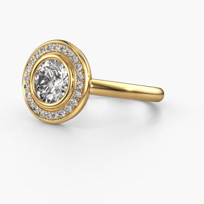 La bague de fiançailles mentionnée ci-dessus est nommée Noud 1 RND. Nous appelons ce type de bague de fiançailles une bague Halo. La bague de fiançailles est forgée en or 14 Carat et comporte un diamant ronds de la de 1.00 crt et autour duquel sont sertis de petits diamants. La largeur de cette bague de fiançailles halo forgée en or jaune traditionnelles vient des plus petites pierres précieuses qui sont serties autour du large diamant central. C’est également ce à partir de quoi cette belle bague de fiançailles tire son nom : halo signifie halo et c’est aussi l’effet que rendent les pierres précieuses plus petites. Cependant, ces pierres précieuses plus petites doivent toutes être serties de la même manière, afin que la lumière ne soit pas seulement introduite dans le diamant et qu’un véritable halo de lumière soit créé. Et c'est ce que font nos maîtres orfèvres. Avec la plus grande précision, chaque diamant soigneusement sélectionné est placé à la main dans la bague de fiançailles. Encore et encore, la bague de fiançailles est maintenue à la lumière pour voir si l'effet spécial est toujours visible. Le résultat est une bague de fiançailles unique, où le diamant choisi devient littéralement le centre brillants. Vous pouvez imaginer que cette bague de fiançailles est vraiment une bague de fiançailles significative à offrir à votre amour de la vie ! Le jour où vous montrez qu’elle est votre centre brillants ! En combinant les dernières techniques modernes, associées à une fabrication ancienne, nous sommes en mesure de fabriquer nos bagues de fiançailles dans notre propre studio. Chaque bijou est fabriqué sur commande. Ceci est avantageux car nous sommes en mesure de vous proposer un prix que vous ne trouverez nulle part ailleurs.Avez-vous déjà des bague de fiançailles spécifiques en tête ? Une bague de fiançailles que vous avez vu quelque part. N'hésitez pas à nous faire part de vos souhaits et nous transformerons votre design en des bague de fiançailles uniques. Vous êtes en mesure de suivre l'évolution de la conception de vos bague de fiançailles car nous utilisons des dessins en 3D. Cela vous donnera un aperçu réaliste de votre design. Nous vous enverrons volontiers une offre sans engagement basée sur un rapport qualité / prix juste. Elle va vous étonner.Pour vous faciliter la tâche, vous pouvez facilement nous retourner tout bijou commandé dans les 30 jours suivant la livraison.