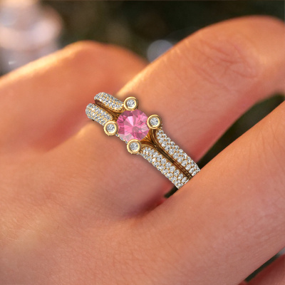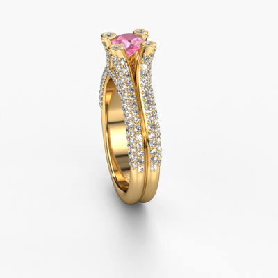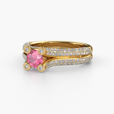 Le nom de cette bague de fiançailles est Stefanie 2. Elle est forgée en or 14 Carat et est sertie d'un saphir rose de 5 mm. Votre petit-amie aime-t-elle les accessoires au look unique ? Ou bien voudriez-vous lui montrer qu'elle ne mérite que le meilleur bijou ? Dans cette bague de fiançailles forgée en or jaune, le savoir-faire, l'amour et la passion se mêlent aux techniques d’orfèvres les plus récentes. Il faut un œil expérimenté, de la patience et une main habile pour concevoir parfaitement cette bague de fiançailles dans les moindres détails. Et c'est exactement le travail que nos orfèvres recherchent ! Le sertissage de ces saphirs roses soigneusement sélectionnés donne à la bague de fiançailles bandes séparées forgée en or jaune une allure supplémentaire. Le style peut être adapté au goût de votre petite amie grâce à un large choix de métaux précieux et de pierres précieuses. De cette manière, vous pouvez créer une bague de fiançailles unique pour la femmes la plus unique de votre vie ! Ce bijou est fabriquées spécialement pour vous par nos maîtres orfèvres dans notre propre atelier.Saviez-vous que nous offrons la garantie du meilleur prix pour votre bague de fiançailles? Cela est possible car tous nos bijoux sont fabriqués à la main dans notre propre atelier. Nous n'avons pas de frais de stocks qui sont coûteux, et nous fabriquons votre bague uniquement une fois que vous l'avez commandée. Grâce au fait que nous ayons toute la production du bijou en main, nous pouvons vous informer sur toutes les caractéristiques de cette bague de fiançailles. C’est précisément parce que l’achat d’une bague en ligne est une expérience excitante que nous comprenons qu’il est plus confortable pour vous de connaître toutes les caractéristiques de votre bague. Notre équipe ajoute quotidiennement de nouveaux modèles à notre collection en ligne. Nos designers et orfèvres travaillent ensemble pour créer le meilleur design. Nous nous efforçons d'offrir une collection diversifiée de bijoux. Peut-être avez-vous déjà en tête un bijou en particulier ? Un bijou que vous avez trouvé quelque part. Veuillez nous contacter pour une consultation gratuite. Nous vous ferons une offre, basée sur un rapport qualité / prix juste, qui vous déconcertera.Pour vous faciliter la tâche, vous pouvez facilement nous retourner tout bijou commandé dans les 30 jours suivant la livraison.
