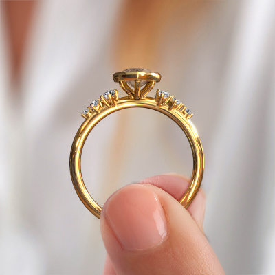 Nous appelons cette bague de fiançailles Aliyah PER. Cette bague forgée en or 14 Carat est sertie d’un diamant brun. Vous recherchez une bague de fiançailles forgée en or jaune unique et au look tendances ? Voici donc une belle bague magnifique que vous pouvez entièrement ajuster à votre goût. Un diamant brun magnifique est utilisé dans cette bague de fiançailles tendances. Celui-ci est sélectionné avec soin, car seule les plus belles des pierres précieuses peuvent briller sur votre bague de fiançailles beaux. Notre orfèvre fabrique votre bague de fiançailles dans notre propre atelier et place le diamant brun dans la bague avec une précision extrême. Donc, la bague est travaillée et polie jusqu'à ce que le résultat désiré soit visible : la bague de fiançailles parfaite pour l'amour de votre vie ! Qu'y a-t-il dorénavant de plus beau qu'une bague de fiançailles tendances conçue par vous-même et fabriquée à la main par nous. Vous pouvez personnaliser chaque modèle avec les différents métaux précieux et pierres précieuses. De cette façon, vous pourrez créer une bague de fiançailles unique. Cette bague peut être mise en place de plusieurs façons. Bien sûr, vous pouvez toujours nous contacter et nous serons heureux de vous aider à composer votre bague de fiançailles tendances Aliyah PER. Vous aimez le design, mais vous souhaitez tout de même quelque chose qui vous convienne plus, ou bien vous souhaitez une pierre précieuse dans les bijoux que vous ne pouvez pas choisir sur notre site, contactez-nous et nous vous aiderons.Notre équipe ajoute quotidiennement de nouveaux modèles à notre collection en ligne. Nos designers et orfèvres travaillent ensemble pour créer le meilleur design. Nous nous efforçons d'offrir une collection diversifiée de bijoux. Peut-être avez-vous déjà en tête un bijou en particulier ? Un bijou que vous avez trouvé quelque part. Veuillez nous contacter pour une consultation gratuite. Nous vous ferons une offre, basée sur un rapport qualité / prix juste, qui vous déconcertera.Pour vous faciliter la tâche, vous pouvez facilement nous retourner tout bijou commandé dans les 30 jours suivant la livraison.