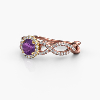 La bague de fiançailles mentionnée ci-dessus a été nommée Dionne rnd. Ce type de bague de fiançailles est appelé une bague de fiançailles solitaire pavé car elle ne comporte qu’une seule pierre centrale et les tiges de la bague de fiançailles sont également pleins. La bague de fiançailles est faite dans une combinaison d'or 14 Carat et d’or jaune et a un améthyste ronds d’une de 5 mm, et des diamants sont sertis sur les épaules de l’anneau. Chaque bijou est fabriquées spécialement pour vous par nos maîtres orfèvres dans notre propre atelier. Cette bague de fiançailles solitaire pavé forgée en or rose classiques a un beau améthystes ronds comme pierre centrale, avec plus de améthystes sertis dans la bague pour accentuer encore plus la présence de la pierre centrale. Le sertissage à griffes autour du améthyste étant ouvert, le améthyste capte la lumière de tous les côtés et brille de manière optimale. Ci-dessus, vous pouvez voir comment notre orfèvre travaille la bague de fiançailles avec une extrême précision dans les moindres détails, de telle sorte que le améthyste élevé puisse attirer tous les regards. Quelle belle bague de fiançailles à offrir lors de votre demande en mariage à l'amour de votre vie, à votre centre rayonnant ! Puisque nous concevons et livrons nos propres bijoux, nous sommes en mesure de vous proposer une bague de fiançailles à un prix que vous ne pourrez pas trouver ailleurs. Une alliance est fabriquée sur commande, ce qui permet d'éviter les excédents de matériel et nous permet de vous proposer une superbe offre de prix. Nous comprenons qu'acheter votre bague de fiançailles en ligne soit un risque, mais nous vous assistons volontiers dans le processus de conception, en tenant compte de votre budget.Avez-vous déjà des bague de fiançailles spécifiques en tête ? Une bague de fiançailles que vous avez vu quelque part. N'hésitez pas à nous faire part de vos souhaits et nous transformerons votre design en des bague de fiançailles uniques. Vous êtes en mesure de suivre l'évolution de la conception de vos bague de fiançailles car nous utilisons des dessins en 3D. Cela vous donnera un aperçu réaliste de votre design. Nous vous enverrons volontiers une offre sans engagement basée sur un rapport qualité / prix juste. Elle va vous étonner.Pour vous faciliter la tâche, vous pouvez facilement nous retourner tout bijou commandé dans les 30 jours suivant la livraison.