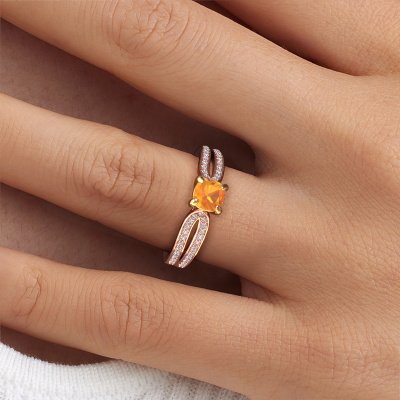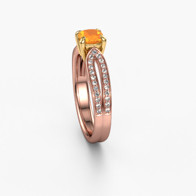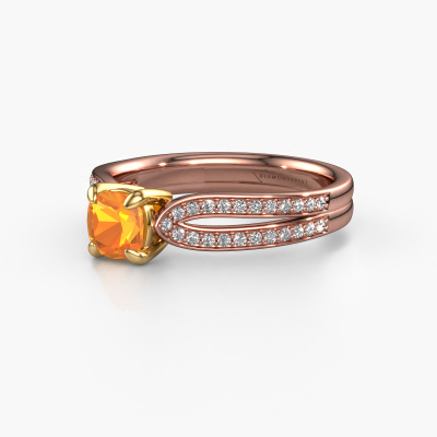La bague de fiançailles mentionnée ci-dessus a été nommée Antonia cus 2. Ce type de bague de fiançailles est appelé une bague de fiançailles solitaire pavé car elle ne comporte qu’une seule pierre centrale et les tiges de la bague de fiançailles sont également pleins. La bague de fiançailles est faite dans une combinaison d'or 14 Carat et d’or jaune et a un citrine coussin d’une de 5 mm, et des diamants synthétiques sont sertis sur les épaules de l’anneau. Chaque bijou est fabriquées spécialement pour vous par nos maîtres orfèvres dans notre propre atelier. Cette bague de fiançailles solitaire pavé forgée en or rose fantaisie a un beau citrines coussin comme pierre centrale, avec plus de citrines sertis dans la bague pour accentuer encore plus la présence de la pierre centrale. Le sertissage à griffes autour du citrine étant ouvert, le citrine capte la lumière de tous les côtés et brille de manière optimale. Ci-dessus, vous pouvez voir comment notre orfèvre travaille la bague de fiançailles avec une extrême précision dans les moindres détails, de telle sorte que le citrine élevé puisse attirer tous les regards. Quelle belle bague de fiançailles à offrir lors de votre demande en mariage à l'amour de votre vie, à votre centre rayonnant ! Qu'y a-t-il dorénavant de plus beau qu'une bague de fiançailles fantaisie conçue par vous-même et fabriquée à la main par nous. Vous pouvez personnaliser chaque modèle avec les différents métaux précieux et pierres précieuses. De cette façon, vous pourrez créer une bague de fiançailles unique. Cette bague peut être mise en place de plusieurs façons. Bien sûr, vous pouvez toujours nous contacter et nous serons heureux de vous aider à composer votre bague de fiançailles fantaisie Antonia cus 2. Vous aimez le design, mais vous souhaitez tout de même quelque chose qui vous convienne plus, ou bien vous souhaitez une pierre précieuse dans les bijoux que vous ne pouvez pas choisir sur notre site, contactez-nous et nous vous aiderons.Avez-vous déjà des bague de fiançailles spécifiques en tête ? Une bague de fiançailles que vous avez vu quelque part. N'hésitez pas à nous faire part de vos souhaits et nous transformerons votre design en des bague de fiançailles uniques. Vous êtes en mesure de suivre l'évolution de la conception de vos bague de fiançailles car nous utilisons des dessins en 3D. Cela vous donnera un aperçu réaliste de votre design. Nous vous enverrons volontiers une offre sans engagement basée sur un rapport qualité / prix juste. Elle va vous étonner.Pour vous faciliter la tâche, vous pouvez facilement nous retourner tout bijou commandé dans les 30 jours suivant la livraison.