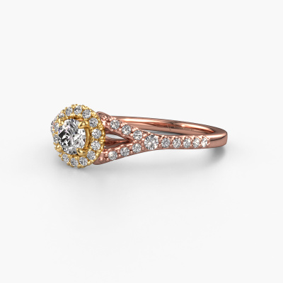 La bague de fiançailles mentionnée ci-dessus a été nommée Kimber RND. Ce type de bague de fiançailles est appelé une bague de fiançailles solitaire pavé car elle ne comporte qu’une seule pierre centrale et les tiges de la bague de fiançailles sont également pleins. La bague de fiançailles est faite dans une combinaison d'or 14 Carat et d’or jaune et a un diamant ronds d’une de 0.25 crt, et des diamants synthétiques sont sertis sur les épaules de l’anneau. Chaque bijou est faite pour briller sur votre doigt, chaque bijou est fabriqué à la main par nos orfèvres. Cette bague de fiançailles solitaire pavé forgée en or rose classiques a un beau diamants ronds comme pierre centrale, avec plus de diamants sertis dans la bague pour accentuer encore plus la présence de la pierre centrale. Le sertissage à griffes autour du diamant étant ouvert, le diamant capte la lumière de tous les côtés et brille de manière optimale. Ci-dessus, vous pouvez voir comment notre orfèvre travaille la bague de fiançailles avec une extrême précision dans les moindres détails, de telle sorte que le diamant élevé puisse attirer tous les regards. Quelle belle bague de fiançailles à offrir lors de votre demande en mariage à l'amour de votre vie, à votre centre rayonnant ! Saviez-vous que nous offrons la garantie du meilleur prix pour votre bague de fiançailles? Cela est possible car tous nos bijoux sont fabriqués à la main dans notre propre atelier. Nous n'avons pas de frais de stocks qui sont coûteux, et nous fabriquons votre bague uniquement une fois que vous l'avez commandée. Grâce au fait que nous ayons toute la production du bijou en main, nous pouvons vous informer sur toutes les caractéristiques de cette bague de fiançailles. C’est précisément parce que l’achat d’une bague en ligne est une expérience excitante que nous comprenons qu’il est plus confortable pour vous de connaître toutes les caractéristiques de votre bague.Notre équipe ajoute quotidiennement de nouveaux modèles à notre collection en ligne. Nos designers et orfèvres travaillent ensemble pour créer le meilleur design. Nous nous efforçons d'offrir une collection diversifiée de bijoux. Peut-être avez-vous déjà en tête un bijou en particulier ? Un bijou que vous avez trouvé quelque part. Veuillez nous contacter pour une consultation gratuite. Nous vous ferons une offre, basée sur un rapport qualité / prix juste, qui vous déconcertera.Pour vous faciliter la tâche, vous pouvez facilement nous retourner tout bijou commandé dans les 30 jours suivant la livraison.