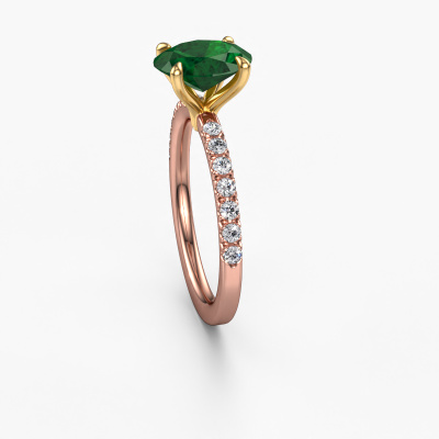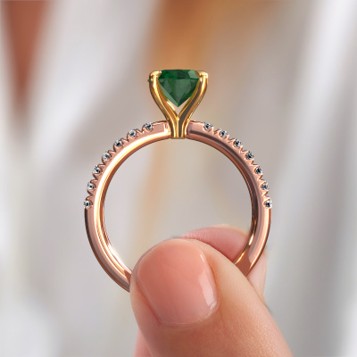 La bague de fiançailles mentionnée ci-dessus a été nommée Crystal OVL 2. Ce type de bague de fiançailles est appelé une bague de fiançailles solitaire pavé car elle ne comporte qu’une seule pierre centrale et les tiges de la bague de fiançailles sont également pleins. La bague de fiançailles est faite dans une combinaison d'or 14 Carat et d’or jaune et a un emeraude ovale d’une de 9x7 mm, et des diamants synthétiques sont sertis sur les épaules de l’anneau. Chaque bijou est fabriquée spécialement pour vous par nos maîtres orfèvres dans notre propre atelier. Cette bague de fiançailles solitaire pavé forgée en or rose exclusives a un beau émeraudes ovale comme pierre centrale, avec plus de émeraudes sertis dans la bague pour accentuer encore plus la présence de la pierre centrale. Le sertissage à griffes autour du emeraude étant ouvert, le emeraude capte la lumière de tous les côtés et brille de manière optimale. Ci-dessus, vous pouvez voir comment notre orfèvre travaille la bague de fiançailles avec une extrême précision dans les moindres détails, de telle sorte que le emeraude élevé puisse attirer tous les regards. Quelle belle bague de fiançailles à offrir lors de votre demande en mariage à l'amour de votre vie, à votre centre rayonnant ! En combinant les dernières techniques modernes, associées à une fabrication ancienne, nous sommes en mesure de fabriquer nos bagues de fiançailles dans notre propre studio. Chaque bijou est fabriqué sur commande. Ceci est avantageux car nous sommes en mesure de vous proposer un prix que vous ne trouverez nulle part ailleurs.Notre équipe ajoute quotidiennement de nouveaux modèles à notre collection en ligne. Nos designers et orfèvres travaillent ensemble pour créer le meilleur design. Nous nous efforçons d'offrir une collection diversifiée de bijoux. Peut-être avez-vous déjà en tête un bijou en particulier ? Un bijou que vous avez trouvé quelque part. Veuillez nous contacter pour une consultation gratuite. Nous vous ferons une offre, basée sur un rapport qualité / prix juste, qui vous déconcertera.Pour vous faciliter la tâche, vous pouvez facilement nous retourner tout bijou commandé dans les 30 jours suivant la livraison.