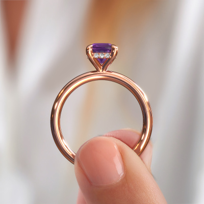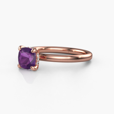 Nous appelons cette bague de fiançailles Simone CUS 2. Cette bague forgée en or 14 Carat est sertie d’un améthyste. Vous recherchez une bague de fiançailles forgée en or rose unique et au look uniques ? Voici donc une belle bague magnifique que vous pouvez entièrement ajuster à votre goût. Un améthyste magnifique est utilisé dans cette bague de fiançailles uniques. Celui-ci est sélectionné avec soin, car seule les plus belles des pierres précieuses peuvent briller sur votre bague de fiançailles gracieuses. Notre orfèvre fabrique votre bague de fiançailles dans notre propre atelier et place le améthyste dans la bague avec une précision extrême. Donc, la bague est travaillée et polie jusqu'à ce que le résultat désiré soit visible : la bague de fiançailles parfaite pour l'amour de votre vie ! En combinant les dernières techniques modernes, associées à une fabrication ancienne, nous sommes en mesure de fabriquer nos bagues de fiançailles dans notre propre studio. Chaque bijou est fabriqué sur commande. Ceci est avantageux car nous sommes en mesure de vous proposer un prix que vous ne trouverez nulle part ailleurs.Notre équipe ajoute quotidiennement de nouveaux modèles à notre collection en ligne. Nos designers et orfèvres travaillent ensemble pour créer le meilleur design. Nous nous efforçons d'offrir une collection diversifiée de bijoux. Peut-être avez-vous déjà en tête un bijou en particulier ? Un bijou que vous avez trouvé quelque part. Veuillez nous contacter pour une consultation gratuite. Nous vous ferons une offre, basée sur un rapport qualité / prix juste, qui vous déconcertera.Pour vous faciliter la tâche, vous pouvez facilement nous retourner tout bijou commandé dans les 30 jours suivant la livraison.