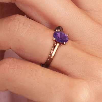 Cette bague de fiançailles porte le nom Shannon ovl. Cette bague de fiançailles forgée en or 14 Carat est sertie d’un améthyste. Cette bague de fiançailles unique est une large bague vintage forgée en or rose qui laissera certainement briller l’amour de votre vie ! Et c'est exactement ce que nous avons comme objectif. De magnifiques améthystes ont été sertis sur cette bague de fiançailles Celtiques. Vous pouvez, bien entendu, utiliser chaque pierre précieuse que nous proposons sur notre site. La pierre précieuse sera sélectionnée avec soin, car nous pensons que seule la plus belle des pierres précieuses peut briller sur votre bague de fiançailles, qu’en dites-vous ? Notre orfèvre fabrique votre bague de fiançailles dans notre propre atelier et place le améthyste dans son anneau avec une précision extrême. Puis, elle est travaillée et polie jusqu'à ce que le résultat soit visible : la bague de fiançailles parfaite pour l'amour de votre vie ! Ce bijou est fabriquée par une équipe d'orfèvres et de designers motivés. Cela permettra à cette pièce unique d'attirer tous les regards.Nos orfèvres ne fabriqueront votre bague de fiançailles qu'une fois que vous l'aurez commandée. Nous ne faisons pas de stock. L'avantage de cela est que nous n'avons pas à inclure les frais de stockage dans nos prix, et nous pouvons donc vous offrir des bijoux à un prix très bas.Notre équipe ajoute quotidiennement de nouveaux modèles à notre collection en ligne. Nos designers et orfèvres travaillent ensemble pour créer le meilleur design. Nous nous efforçons d'offrir une collection diversifiée de bijoux. Peut-être avez-vous déjà en tête un bijou en particulier ? Un bijou que vous avez trouvé quelque part. Veuillez nous contacter pour une consultation gratuite. Nous vous ferons une offre, basée sur un rapport qualité / prix juste, qui vous déconcertera.Pour vous faciliter la tâche, vous pouvez facilement nous retourner tout bijou commandé dans les 30 jours suivant la livraison.