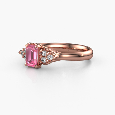Cette bague de fiançailles porte le nom Myrna EME. Cette bague de fiançailles forgée en or 14 Carat est sertie d’un saphir rose de 6x4 mm. Cette bague de fiançailles forgée en or rose en filigrane est un chef-d’œuvre en soi. Un magnifique design de fils sophistiqués qui forment un ensemble unique. Et simultanément, un beau défi pour nos orfèvres passionnés ! Avec un grand dévouement, de la patience et une grande précision, ils forgent cette bague de fiançailles spécialement pour votre bien-aimée. Tout est fabriqué à la main, de telle sorte que chaque fil puisse être parfaitement travaillé dans les moindres détails. Un long processus de forgeage, de travail et de polissage, jusqu'à ce que le maître forgeron, gardant la bague de fiançailles à la lumière, soit satisfait du résultat... Une bague de fiançailles parfaite dont il est vraiment fier. C'est la raison pour laquelle cette bague de fiançailles en filigrane vintage est aussi une large bague de fiançailles à offrir à l'amour de votre vie ! Vous allez bientôt faire votre demande à cette personne, et cette bague de fiançailles unique n’est faite que pour cette seule personne ! Merveilleux, non ? Ce bijou est unique, car vous pouvez concevoir ces bagues en fonction de vos souhaits.Qu'y a-t-il dorénavant de plus beau qu'une bague de fiançailles vintage conçue par vous-même et fabriquée à la main par nous. Vous pouvez personnaliser chaque modèle avec les différents métaux précieux et pierres précieuses. De cette façon, vous pourrez créer une bague de fiançailles unique. Cette bague peut être mise en place de plusieurs façons. Bien sûr, vous pouvez toujours nous contacter et nous serons heureux de vous aider à composer votre bague de fiançailles vintage Myrna EME. Vous aimez le design, mais vous souhaitez tout de même quelque chose qui vous convienne plus, ou bien vous souhaitez une pierre précieuse dans les bijoux que vous ne pouvez pas choisir sur notre site, contactez-nous et nous vous aiderons.Avez-vous déjà des bague de fiançailles spécifiques en tête ? Une bague de fiançailles que vous avez vu quelque part. N'hésitez pas à nous faire part de vos souhaits et nous transformerons votre design en des bague de fiançailles uniques. Vous êtes en mesure de suivre l'évolution de la conception de vos bague de fiançailles car nous utilisons des dessins en 3D. Cela vous donnera un aperçu réaliste de votre design. Nous vous enverrons volontiers une offre sans engagement basée sur un rapport qualité / prix juste. Elle va vous étonner.Pour vous faciliter la tâche, vous pouvez facilement nous retourner tout bijou commandé dans les 30 jours suivant la livraison.