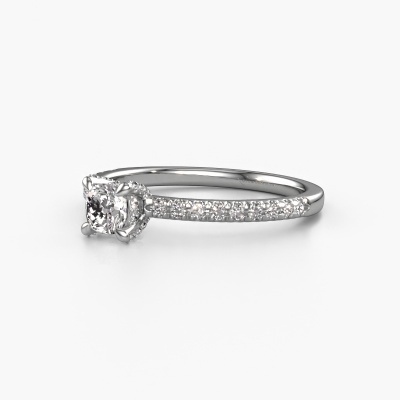 La bague de fiançailles mentionnée ci-dessus a été nommée Saskia 1 cus. Ce type de bague de fiançailles est appelé une bague de fiançailles solitaire pavé car elle ne comporte qu’une seule pierre centrale et les tiges de la bague de fiançailles sont également pleins. La bague de fiançailles est faite dans une combinaison d'or et d’platine et a un diamant coussin d’une de 0.33 crt, et des diamants sont sertis sur les épaules de l’anneau. Chaque bijou est fabriquée par une équipe d'orfèvres et de designers motivés. Cela permettra à cette pièce unique d'attirer tous les regards. Cette bague de fiançailles solitaire pavé forgée en platine uniques a un beau diamants coussin comme pierre centrale, avec plus de diamants sertis dans la bague pour accentuer encore plus la présence de la pierre centrale. Le sertissage à griffes autour du diamant étant ouvert, le diamant capte la lumière de tous les côtés et brille de manière optimale. Ci-dessus, vous pouvez voir comment notre orfèvre travaille la bague de fiançailles avec une extrême précision dans les moindres détails, de telle sorte que le diamant élevé puisse attirer tous les regards. Quelle belle bague de fiançailles à offrir lors de votre demande en mariage à l'amour de votre vie, à votre centre rayonnant ! En combinant les dernières techniques modernes, associées à une fabrication ancienne, nous sommes en mesure de fabriquer nos bagues de fiançailles dans notre propre studio. Chaque bijou est fabriqué sur commande. Ceci est avantageux car nous sommes en mesure de vous proposer un prix que vous ne trouverez nulle part ailleurs.Notre équipe ajoute quotidiennement de nouveaux modèles à notre collection en ligne. Nos designers et orfèvres travaillent ensemble pour créer le meilleur design. Nous nous efforçons d'offrir une collection diversifiée de bijoux. Peut-être avez-vous déjà en tête un bijou en particulier ? Un bijou que vous avez trouvé quelque part. Veuillez nous contacter pour une consultation gratuite. Nous vous ferons une offre, basée sur un rapport qualité / prix juste, qui vous déconcertera.Pour vous faciliter la tâche, vous pouvez facilement nous retourner tout bijou commandé dans les 30 jours suivant la livraison.