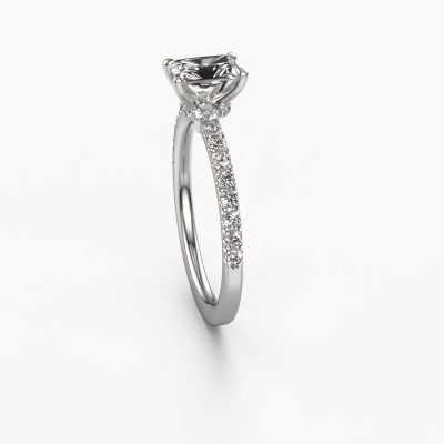 La bague de fiançailles mentionnée ci-dessus a été nommée Crystal RAD 4. Ce type de bague de fiançailles est appelé une bague de fiançailles solitaire pavé car elle ne comporte qu’une seule pierre centrale et les tiges de la bague de fiançailles sont également pleins. La bague de fiançailles est faite dans une combinaison d'or et d’platine et a un diamant radiant d’une de 0.65 crt, et des diamants synthétiques sont sertis sur les épaules de l’anneau. Chaque bijou est faite avec passion et amour par l'un de nos maîtres orfèvres. Cette bague de fiançailles solitaire pavé forgée en platine à la mode a un beau diamants radiant comme pierre centrale, avec plus de diamants sertis dans la bague pour accentuer encore plus la présence de la pierre centrale. Le sertissage à griffes autour du diamant étant ouvert, le diamant capte la lumière de tous les côtés et brille de manière optimale. Ci-dessus, vous pouvez voir comment notre orfèvre travaille la bague de fiançailles avec une extrême précision dans les moindres détails, de telle sorte que le diamant élevé puisse attirer tous les regards. Quelle belle bague de fiançailles à offrir lors de votre demande en mariage à l'amour de votre vie, à votre centre rayonnant ! Saviez-vous que nous offrons la garantie du meilleur prix pour votre bague de fiançailles? Cela est possible car tous nos bijoux sont fabriqués à la main dans notre propre atelier. Nous n'avons pas de frais de stocks qui sont coûteux, et nous fabriquons votre bague uniquement une fois que vous l'avez commandée. Grâce au fait que nous ayons toute la production du bijou en main, nous pouvons vous informer sur toutes les caractéristiques de cette bague de fiançailles. C’est précisément parce que l’achat d’une bague en ligne est une expérience excitante que nous comprenons qu’il est plus confortable pour vous de connaître toutes les caractéristiques de votre bague.Avez-vous déjà des bague de fiançailles spécifiques en tête ? Une bague de fiançailles que vous avez vu quelque part. N'hésitez pas à nous faire part de vos souhaits et nous transformerons votre design en des bague de fiançailles uniques. Vous êtes en mesure de suivre l'évolution de la conception de vos bague de fiançailles car nous utilisons des dessins en 3D. Cela vous donnera un aperçu réaliste de votre design. Nous vous enverrons volontiers une offre sans engagement basée sur un rapport qualité / prix juste. Elle va vous étonner.Pour vous faciliter la tâche, vous pouvez facilement nous retourner tout bijou commandé dans les 30 jours suivant la livraison.