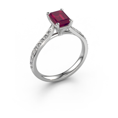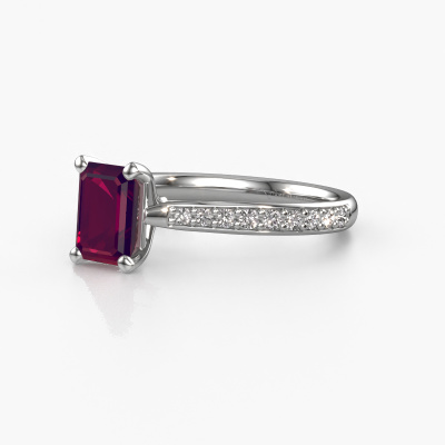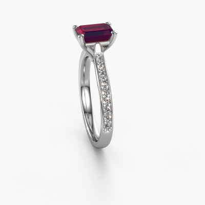 La bague de fiançailles mentionnée ci-dessus a été nommée Mignon eme 2. Ce type de bague de fiançailles est appelé une bague de fiançailles solitaire pavé car elle ne comporte qu’une seule pierre centrale et les tiges de la bague de fiançailles sont également pleins. La bague de fiançailles est faite dans une combinaison d'or et d’platine et a un rhodolite taille émeraude d’une de 7x5 mm, et des diamants synthétiques sont sertis sur les épaules de l’anneau. Chaque bijou est faite spécialement pour vous, avec une attention particulière portée aux détails et au design. Cette bague de fiançailles solitaire pavé forgée en platine exclusives a un beau rhodolites taille émeraude comme pierre centrale, avec plus de rhodolites sertis dans la bague pour accentuer encore plus la présence de la pierre centrale. Le sertissage à griffes autour du rhodolite étant ouvert, le rhodolite capte la lumière de tous les côtés et brille de manière optimale. Ci-dessus, vous pouvez voir comment notre orfèvre travaille la bague de fiançailles avec une extrême précision dans les moindres détails, de telle sorte que le rhodolite élevé puisse attirer tous les regards. Quelle belle bague de fiançailles à offrir lors de votre demande en mariage à l'amour de votre vie, à votre centre rayonnant ! Vous avez peut-être remarqué que nos prix sont en moyenne inférieurs de 30% à ceux d'un autre bijoutier. Et ce alors que la qualité de nos bijoux est même plus élevée dans la plupart des cas ! En effet, nos orfèvres fabriquent votre bague de fiançailles directement dans notre propre atelier. Cela signifie que nous n'avons pas à inclure des frais de stocks coûteux et que nous pouvons travailler n'importe quel détail directement sur votre bague de fiançailles.Avez-vous déjà des bague de fiançailles spécifiques en tête ? Une bague de fiançailles que vous avez vu quelque part. N'hésitez pas à nous faire part de vos souhaits et nous transformerons votre design en des bague de fiançailles uniques. Vous êtes en mesure de suivre l'évolution de la conception de vos bague de fiançailles car nous utilisons des dessins en 3D. Cela vous donnera un aperçu réaliste de votre design. Nous vous enverrons volontiers une offre sans engagement basée sur un rapport qualité / prix juste. Elle va vous étonner.Pour vous faciliter la tâche, vous pouvez facilement nous retourner tout bijou commandé dans les 30 jours suivant la livraison.
