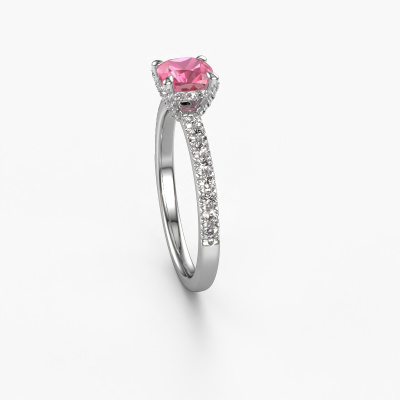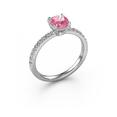 La bague de fiançailles mentionnée ci-dessus a été nommée Saskia 1 cus. Ce type de bague de fiançailles est appelé une bague de fiançailles solitaire pavé car elle ne comporte qu’une seule pierre centrale et les tiges de la bague de fiançailles sont également pleins. La bague de fiançailles est faite dans une combinaison d'or et d’platine et a un saphir rose coussin d’une de 5.5 mm, et des diamants sont sertis sur les épaules de l’anneau. Chaque bijou est fabriquée par une équipe d'orfèvres et de designers motivés. Cela permettra à cette pièce unique d'attirer tous les regards. Cette bague de fiançailles solitaire pavé forgée en platine uniques a un beau saphirs roses coussin comme pierre centrale, avec plus de saphirs roses sertis dans la bague pour accentuer encore plus la présence de la pierre centrale. Le sertissage à griffes autour du saphir rose étant ouvert, le saphir rose capte la lumière de tous les côtés et brille de manière optimale. Ci-dessus, vous pouvez voir comment notre orfèvre travaille la bague de fiançailles avec une extrême précision dans les moindres détails, de telle sorte que le saphir rose élevé puisse attirer tous les regards. Quelle belle bague de fiançailles à offrir lors de votre demande en mariage à l'amour de votre vie, à votre centre rayonnant ! En combinant les dernières techniques modernes, associées à une fabrication ancienne, nous sommes en mesure de fabriquer nos bagues de fiançailles dans notre propre studio. Chaque bijou est fabriqué sur commande. Ceci est avantageux car nous sommes en mesure de vous proposer un prix que vous ne trouverez nulle part ailleurs.Notre équipe ajoute quotidiennement de nouveaux modèles à notre collection en ligne. Nos designers et orfèvres travaillent ensemble pour créer le meilleur design. Nous nous efforçons d'offrir une collection diversifiée de bijoux. Peut-être avez-vous déjà en tête un bijou en particulier ? Un bijou que vous avez trouvé quelque part. Veuillez nous contacter pour une consultation gratuite. Nous vous ferons une offre, basée sur un rapport qualité / prix juste, qui vous déconcertera.Pour vous faciliter la tâche, vous pouvez facilement nous retourner tout bijou commandé dans les 30 jours suivant la livraison.