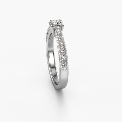 Cette bague de fiançailles porte le nom Shonta CUS. Cette bague de fiançailles forgée en or est sertie d’un diamant de 0.464 crt. Cette bague de fiançailles forgée en platine en filigrane est un chef-d’œuvre en soi. Un magnifique design de fils sophistiqués qui forment un ensemble unique. Et simultanément, un beau défi pour nos orfèvres passionnés ! Avec un grand dévouement, de la patience et une grande précision, ils forgent cette bague de fiançailles spécialement pour votre bien-aimée. Tout est fabriqué à la main, de telle sorte que chaque fil puisse être parfaitement travaillé dans les moindres détails. Un long processus de forgeage, de travail et de polissage, jusqu'à ce que le maître forgeron, gardant la bague de fiançailles à la lumière, soit satisfait du résultat... Une bague de fiançailles parfaite dont il est vraiment fier. C'est la raison pour laquelle cette bague de fiançailles en filigrane vintage est aussi une large bague de fiançailles à offrir à l'amour de votre vie ! Vous allez bientôt faire votre demande à cette personne, et cette bague de fiançailles unique n’est faite que pour cette seule personne ! Merveilleux, non ? Ce bijou est faite pour briller sur votre doigt, chaque bijou est fabriqué à la main par nos orfèvres.Nos orfèvres ne fabriqueront votre bague de fiançailles qu'une fois que vous l'aurez commandée. Nous ne faisons pas de stock. L'avantage de cela est que nous n'avons pas à inclure les frais de stockage dans nos prix, et nous pouvons donc vous offrir des bijoux à un prix très bas.Notre équipe de designers talentueux et passionnés ajoute chaque jour de nouveaux modèles bague de fiançailles à notre collection en ligne. Notre objectif est de pouvoir vous offrir une grande variété de bijoux. N'hésitez pas à demander un devis si vous avez des souhaits spécifiques pour votre bague de fiançailles. Nous garantissons de vous faire une offre que vous ne pourrez pas refuser.Pour vous faciliter la tâche, vous pouvez facilement nous retourner tout bijou commandé dans les 30 jours suivant la livraison.