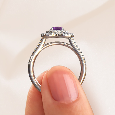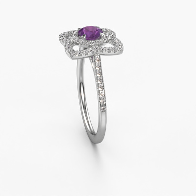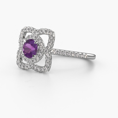 Cette bague de fiançailles porte le nom Cleopatra. Cette bague de fiançailles forgée en or est sertie d’un améthyste. Cette bague de fiançailles unique est une large bague vintage forgée en platine qui laissera certainement briller l’amour de votre vie ! Et c'est exactement ce que nous avons comme objectif. De magnifiques améthystes ont été sertis sur cette bague de fiançailles vintage. Vous pouvez, bien entendu, utiliser chaque pierre précieuse que nous proposons sur notre site. La pierre précieuse sera sélectionnée avec soin, car nous pensons que seule la plus belle des pierres précieuses peut briller sur votre bague de fiançailles, qu’en dites-vous ? Notre orfèvre fabrique votre bague de fiançailles dans notre propre atelier et place le améthyste dans son anneau avec une précision extrême. Puis, elle est travaillée et polie jusqu'à ce que le résultat soit visible : la bague de fiançailles parfaite pour l'amour de votre vie ! Ce bijou est faite spécialement pour vous, avec une attention particulière portée aux détails et au design.Saviez-vous que nous offrons la garantie du meilleur prix pour votre bague de fiançailles? Cela est possible car tous nos bijoux sont fabriqués à la main dans notre propre atelier. Nous n'avons pas de frais de stocks qui sont coûteux, et nous fabriquons votre bague uniquement une fois que vous l'avez commandée. Grâce au fait que nous ayons toute la production du bijou en main, nous pouvons vous informer sur toutes les caractéristiques de cette bague de fiançailles. C’est précisément parce que l’achat d’une bague en ligne est une expérience excitante que nous comprenons qu’il est plus confortable pour vous de connaître toutes les caractéristiques de votre bague.Avez-vous déjà des bague de fiançailles spécifiques en tête ? Une bague de fiançailles que vous avez vu quelque part. N'hésitez pas à nous faire part de vos souhaits et nous transformerons votre design en des bague de fiançailles uniques. Vous êtes en mesure de suivre l'évolution de la conception de vos bague de fiançailles car nous utilisons des dessins en 3D. Cela vous donnera un aperçu réaliste de votre design. Nous vous enverrons volontiers une offre sans engagement basée sur un rapport qualité / prix juste. Elle va vous étonner.Pour vous faciliter la tâche, vous pouvez facilement nous retourner tout bijou commandé dans les 30 jours suivant la livraison.