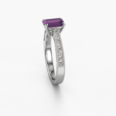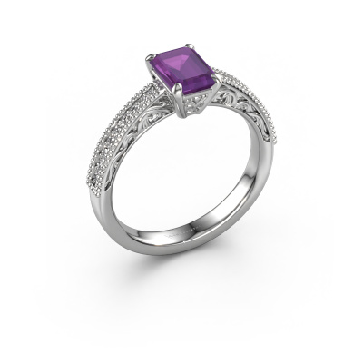 Cette bague de fiançailles porte le nom Shonta EME. Cette bague de fiançailles forgée en or est sertie d’un améthyste. Cette bague de fiançailles unique est une large bague vintage forgée en platine qui laissera certainement briller l’amour de votre vie ! Et c'est exactement ce que nous avons comme objectif. De magnifiques améthystes ont été sertis sur cette bague de fiançailles vintage. Vous pouvez, bien entendu, utiliser chaque pierre précieuse que nous proposons sur notre site. La pierre précieuse sera sélectionnée avec soin, car nous pensons que seule la plus belle des pierres précieuses peut briller sur votre bague de fiançailles, qu’en dites-vous ? Notre orfèvre fabrique votre bague de fiançailles dans notre propre atelier et place le améthyste dans son anneau avec une précision extrême. Puis, elle est travaillée et polie jusqu'à ce que le résultat soit visible : la bague de fiançailles parfaite pour l'amour de votre vie ! Ce bijou est fabriquée par une équipe d'orfèvres et de designers motivés. Cela permettra à cette pièce unique d'attirer tous les regards.Vous avez peut-être remarqué que nos prix sont en moyenne inférieurs de 30% à ceux d'un autre bijoutier. Et ce alors que la qualité de nos bijoux est même plus élevée dans la plupart des cas ! En effet, nos orfèvres fabriquent votre bague de fiançailles directement dans notre propre atelier. Cela signifie que nous n'avons pas à inclure des frais de stocks coûteux et que nous pouvons travailler n'importe quel détail directement sur votre bague de fiançailles.Avez-vous déjà des bague de fiançailles spécifiques en tête ? Une bague de fiançailles que vous avez vu quelque part. N'hésitez pas à nous faire part de vos souhaits et nous transformerons votre design en des bague de fiançailles uniques. Vous êtes en mesure de suivre l'évolution de la conception de vos bague de fiançailles car nous utilisons des dessins en 3D. Cela vous donnera un aperçu réaliste de votre design. Nous vous enverrons volontiers une offre sans engagement basée sur un rapport qualité / prix juste. Elle va vous étonner.Pour vous faciliter la tâche, vous pouvez facilement nous retourner tout bijou commandé dans les 30 jours suivant la livraison.