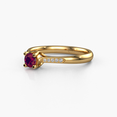Nous avons donné le nom Janna 2 à la bague de fiançailles mentionnée ci-dessous. Ce type de bague de fiançailles est appelé une bague de fiançailles solitaire pavé car elle ne comporte qu’une seule pierre centrale et les tiges de la bague de fiançailles ont également une finition pleine. Cette bague de fiançailles est forgée en or 14 Carat et comporte un rhodolite ronds de 4 mm. Des diamants sont sertis dans les épaules latérales de l’anneau. Chaque bijou est fabriquée spécialement pour vous par nos maîtres orfèvres dans notre propre atelier.. Cette bague de fiançailles solitaire pavé forgée en or jaune classiques a un beau rhodolite ronds en guise de pierre centrale, avec plus de diamants dans l’anneau pour accentuer encore plus l’effet de la pierre centrale. Le sertissage à griffes autour du rhodolite étant ouvert, le rhodolite capte la lumière de tous les côtés et brille de manière optimale. Ci-dessus, vous pouvez voir comment notre orfèvre a travaillé la bague de fiançailles dans les moindres détails. de telle sorte que le rhodolite élevé puisse véritablement attirer tous les regards. Quelle belle bague de fiançailles à offre lors de votre demande en mariage à l'amour de votre vie, à votre centre rayonnant ! En combinant les dernières techniques modernes, associées à une fabrication ancienne, nous sommes en mesure de fabriquer nos bagues de fiançailles dans notre propre studio. Chaque bijou est fabriqué sur commande. Ceci est avantageux car nous sommes en mesure de vous proposer un prix que vous ne trouverez nulle part ailleurs.Avez-vous déjà des bague de fiançailles spécifiques en tête ? Une bague de fiançailles que vous avez vu quelque part. N'hésitez pas à nous faire part de vos souhaits et nous transformerons votre design en des bague de fiançailles uniques. Vous êtes en mesure de suivre l'évolution de la conception de vos bague de fiançailles car nous utilisons des dessins en 3D. Cela vous donnera un aperçu réaliste de votre design. Nous vous enverrons volontiers une offre sans engagement basée sur un rapport qualité / prix juste. Elle va vous étonner.Pour vous faciliter la tâche, vous pouvez facilement nous retourner tout bijou commandé dans les 30 jours suivant la livraison.